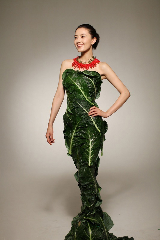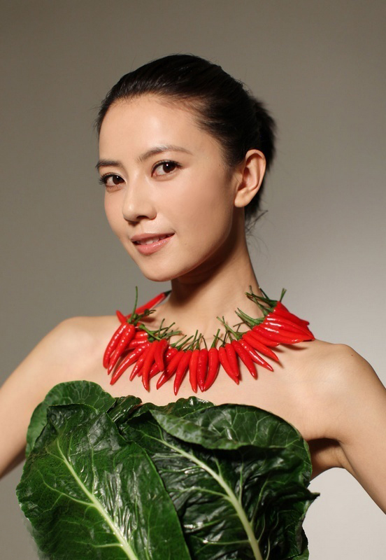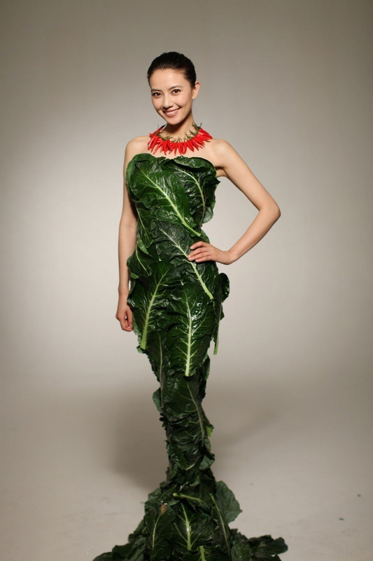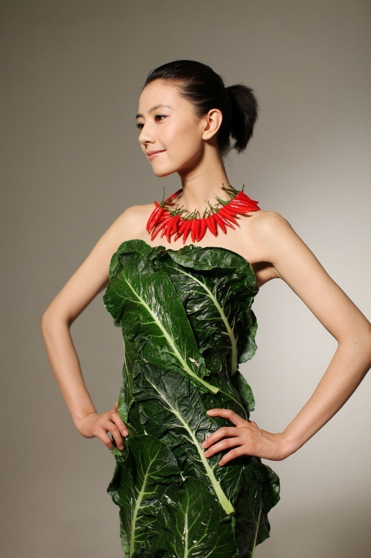 高圆圆拍公益广告 穿“蔬菜礼服”倡导素食