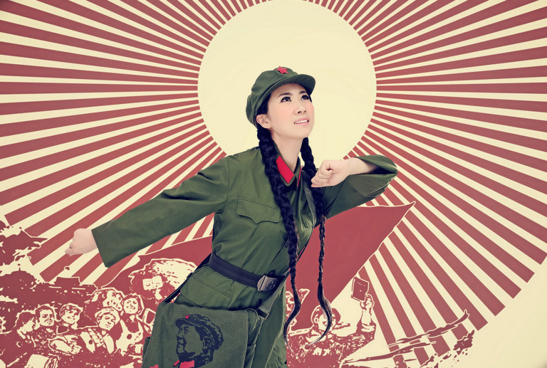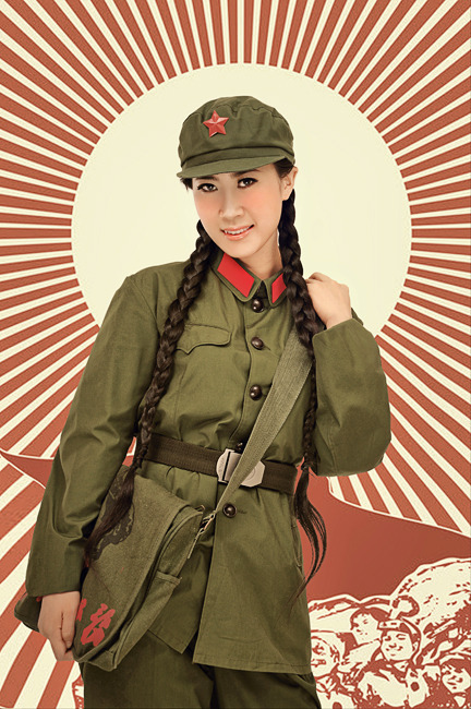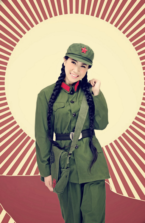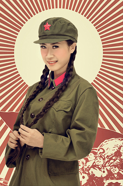 芙蓉姐姐红歌写真 军装麻花辨清纯亮相
