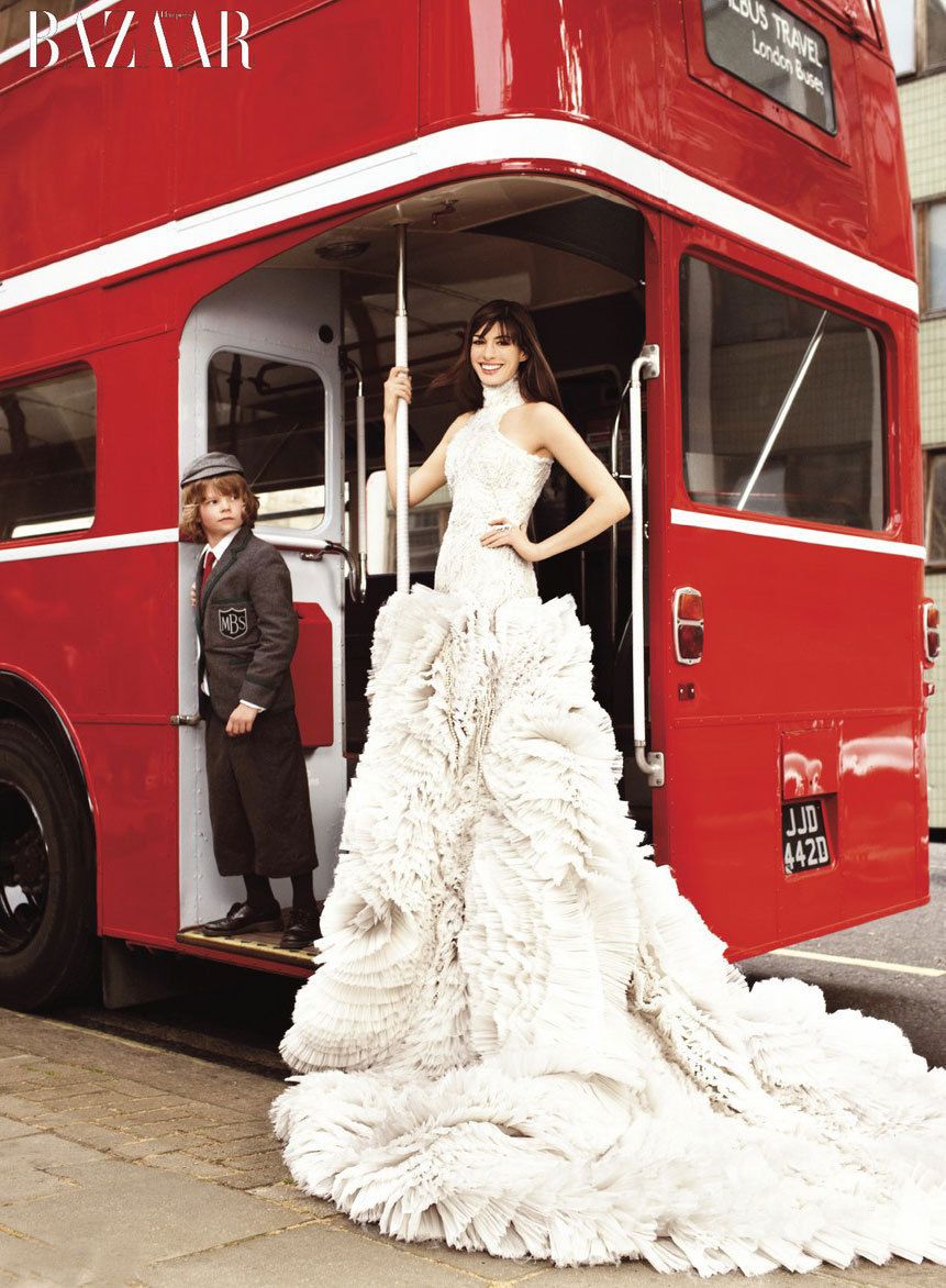 安妮-海瑟薇登《Harper's Bazaar》7月号封面,展招牌笑容。