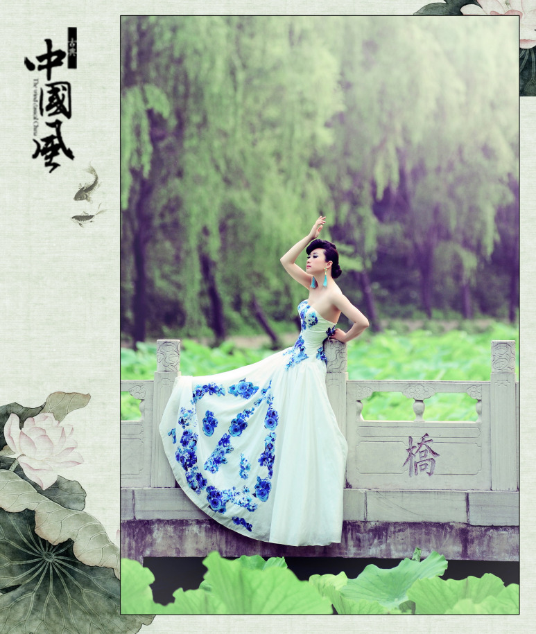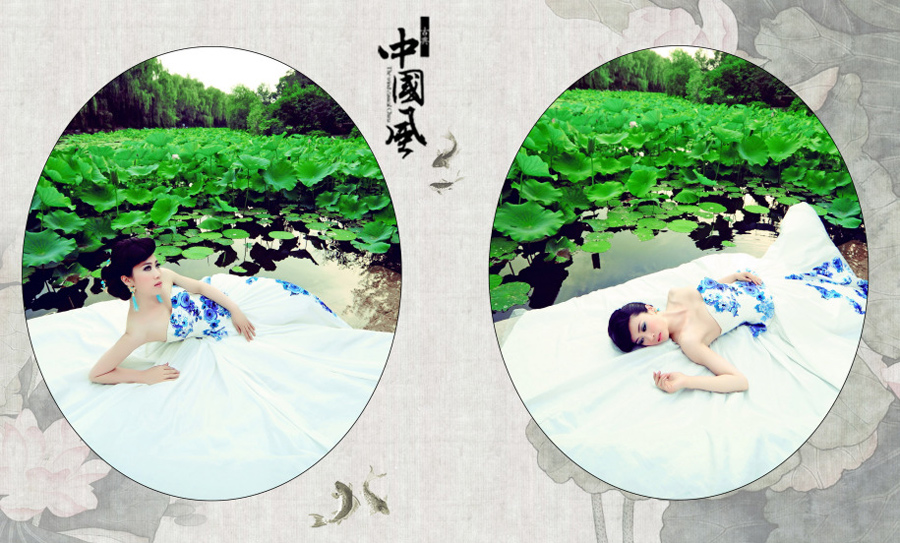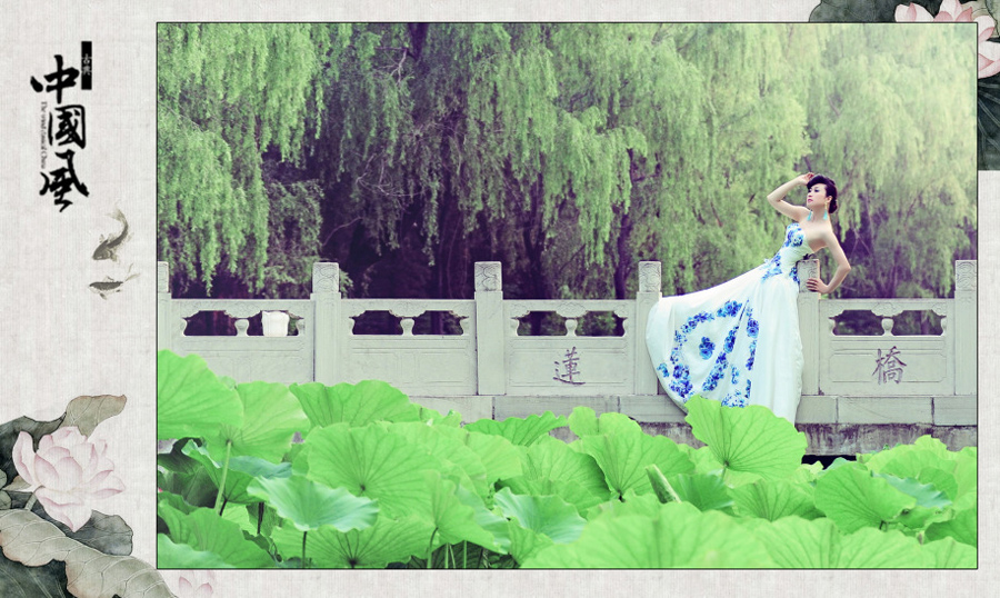 芙蓉姐姐荷塘写真 演绎青花瓷版出水芙蓉