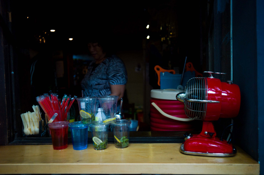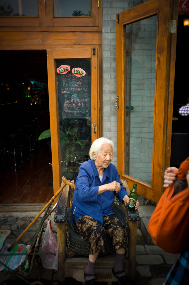 北京的老巷子很多,斑驳的老汽车站牌、安详的老人、墨绿色的树荫……当然,也有时髦的现代女孩。