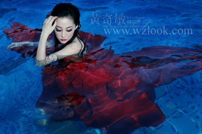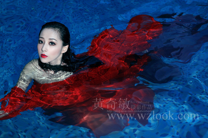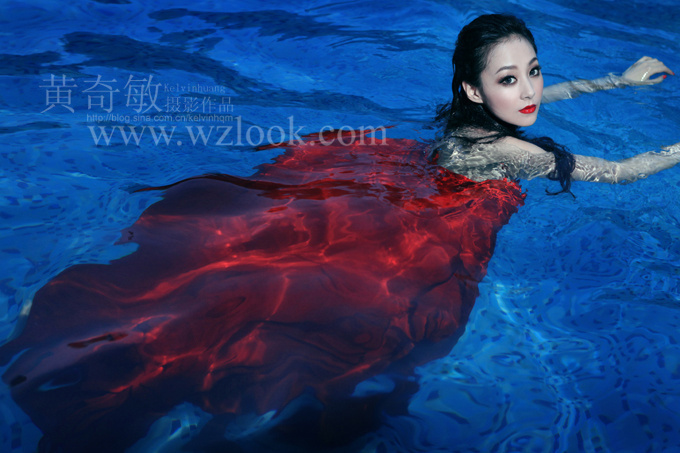 近期范冰冰一组中国风红衣水下写真爆红,引发无数女模相继模仿。今天小编良久就带大家看看另一朵水中花。