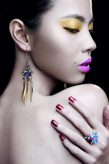 Aissa.Q演绎诱人玫红唇色 多彩首饰熠熠生辉
