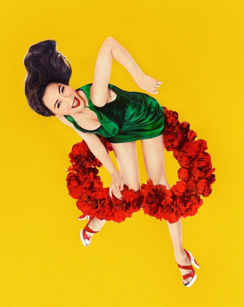 阿朵新年大片 酒红长裙演绎旧上海歌女