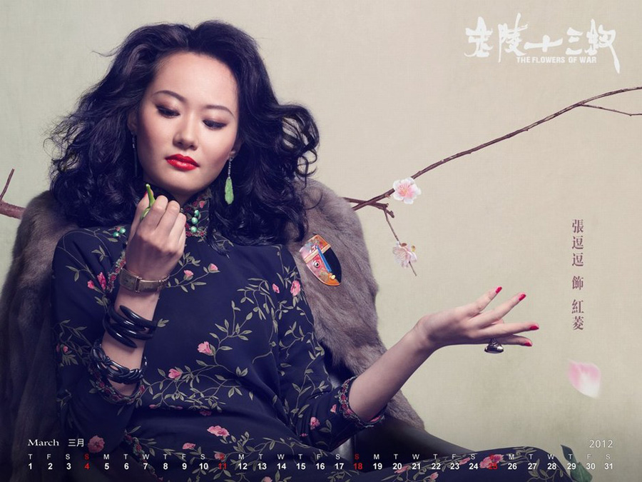 近日,由张艺谋执导的影片《金陵十三钗》曝光了一组“十三钗”台历写真。目前,影片正在国内院线热映。此外,在本月公布的美国电影电视金球奖中,《金陵十三钗》入围了最佳外语片。