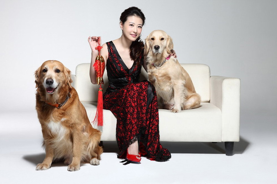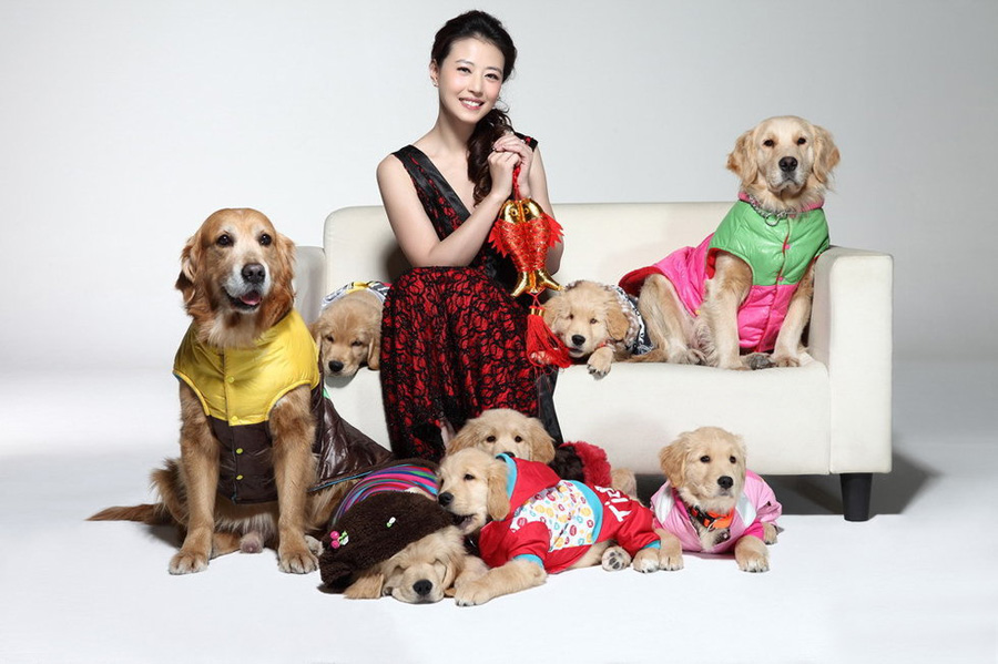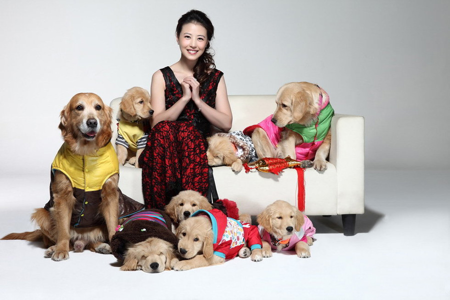 周海媚拍贺岁写真 携八犬入镜贺新春
