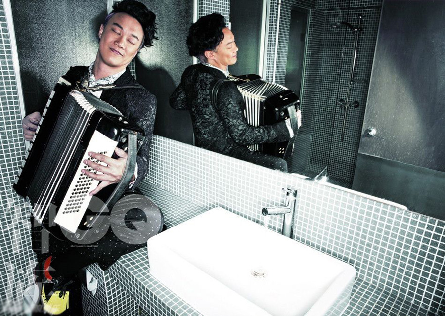 陈奕迅最新搞怪杂志大片:与乐器同乐