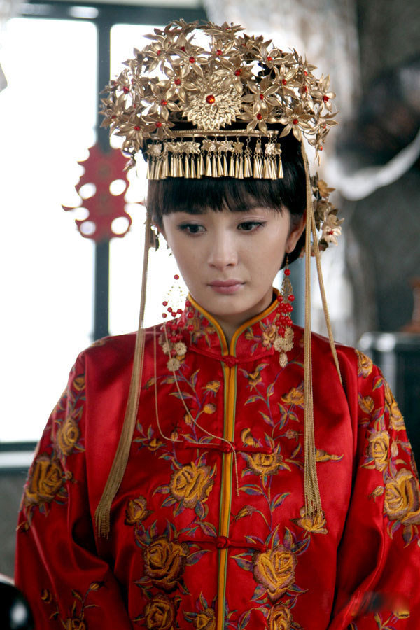演员的服装和发饰都是按照民国年代的资料照片悉心拷贝,戏服以手工刺绣为重点,将民国大家闺秀的风范一一展现,新娘嫁衣绣饰更是国宝级的绝世之作,杨幂红色嫁衣上硕大的牡丹刺绣尽显华贵。