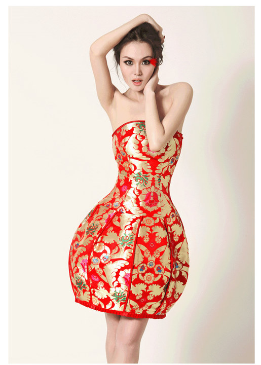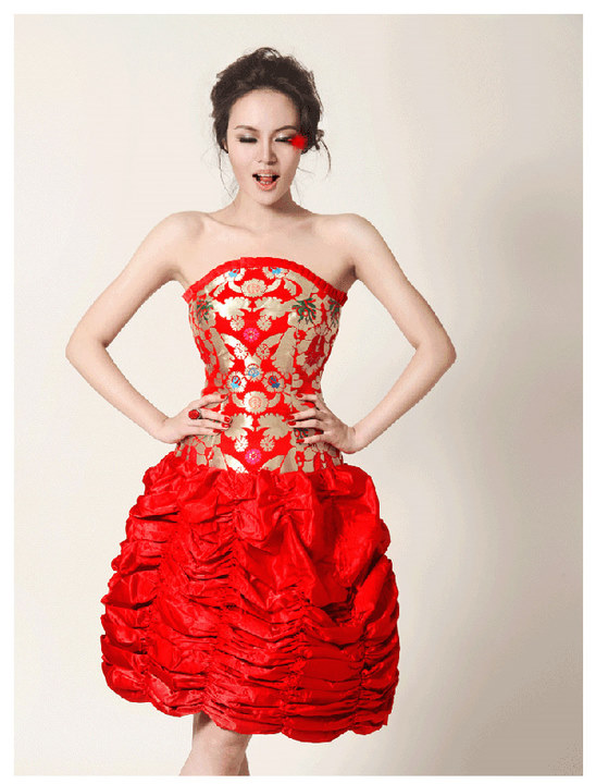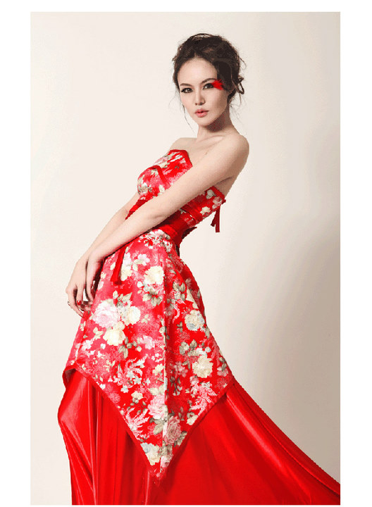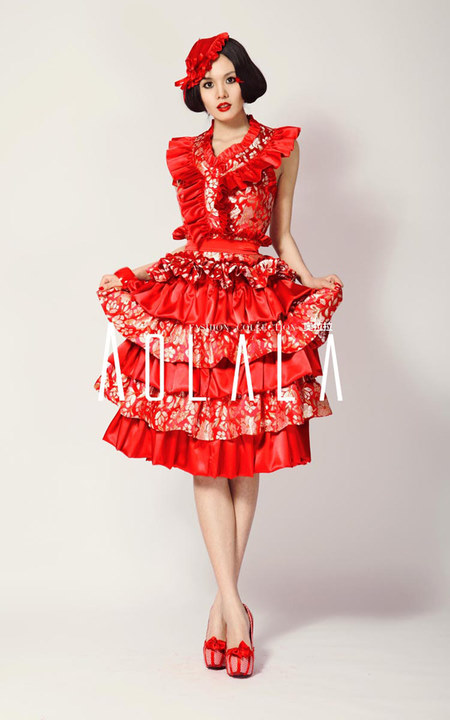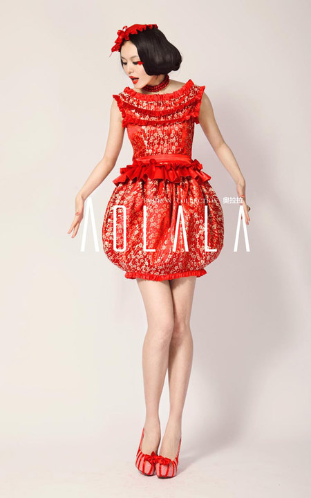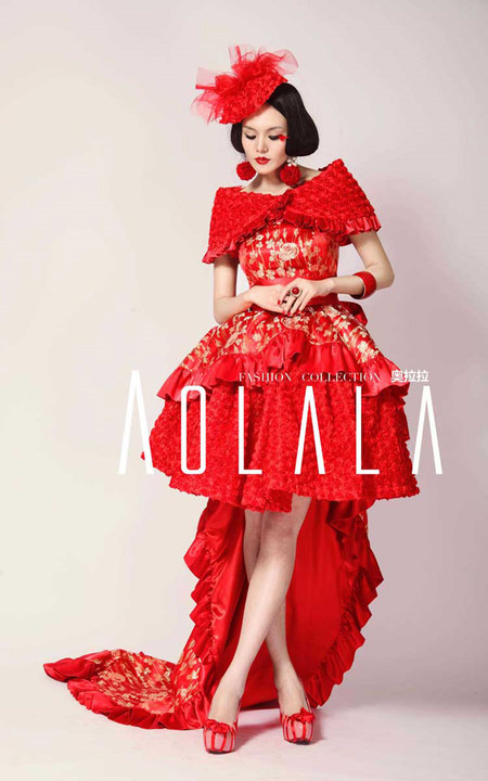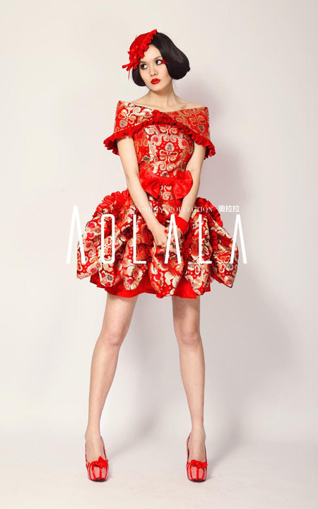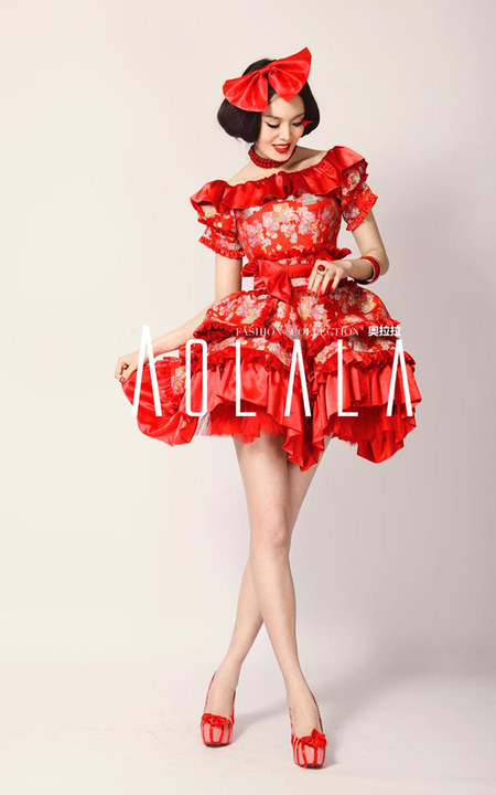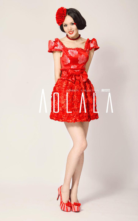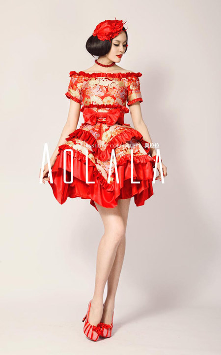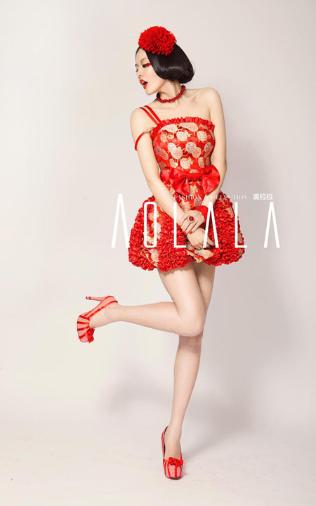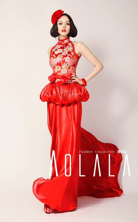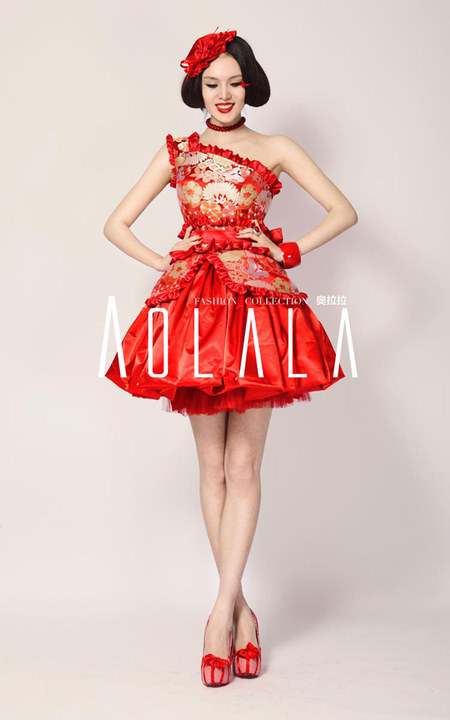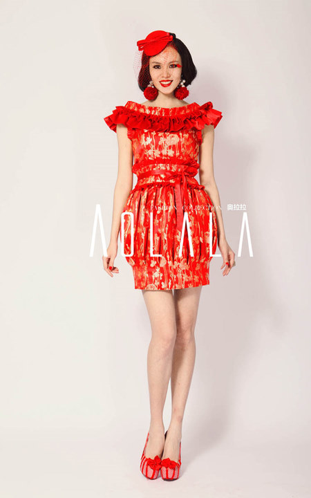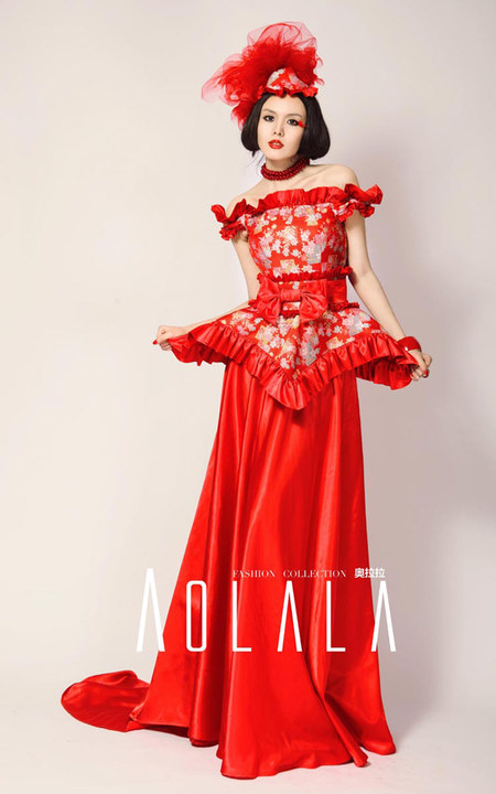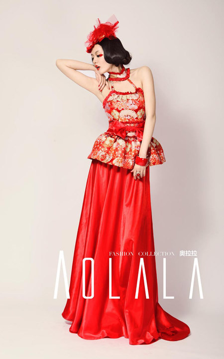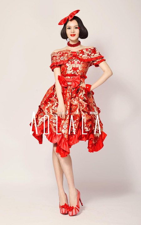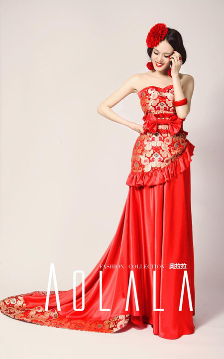 中国红和金色完美的融合,简约不简单。AOLALA为您打造时尚感十足的中国新娘。拒绝俗套,来点颜色瞧瞧!原文地址:http://tao.hercity.com/store.html?nick=taozibaobei07
