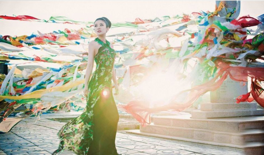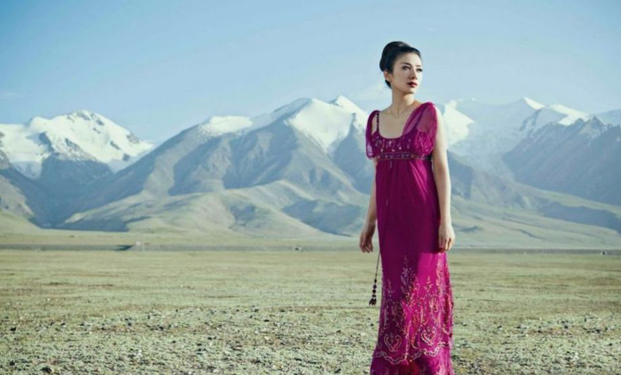 近日,黄奕受芭莎杂志邀请拍摄了一组可可西里梦幻大片。她,身着飘逸礼服,婉约大气,展现了一种自然灵动的西域风情。