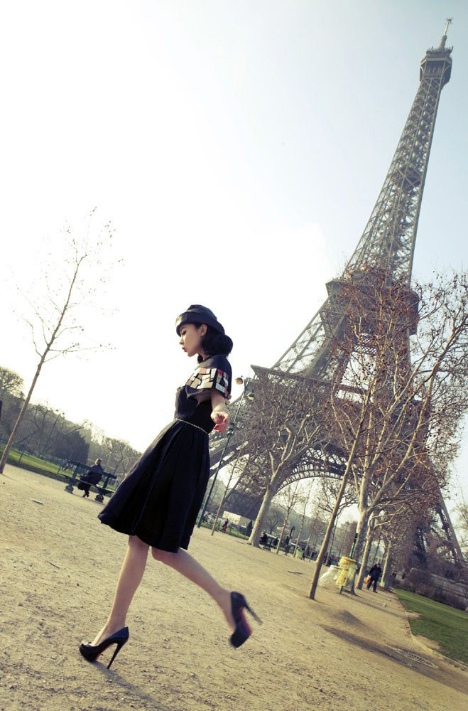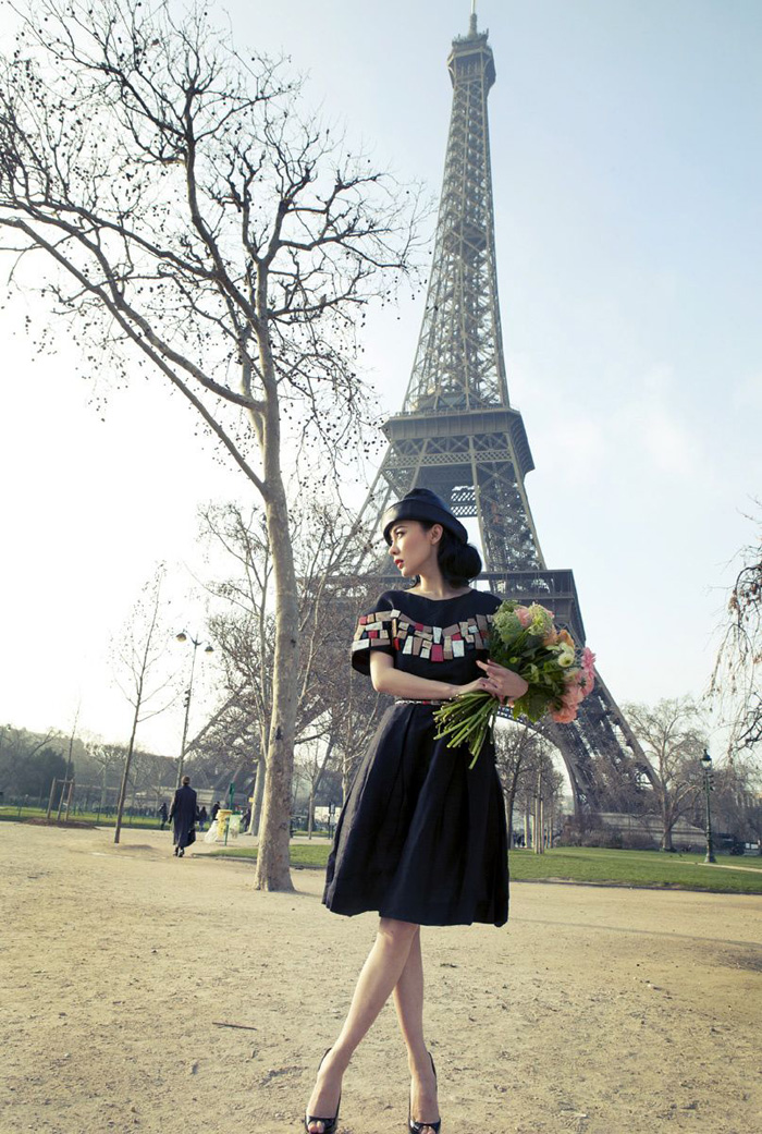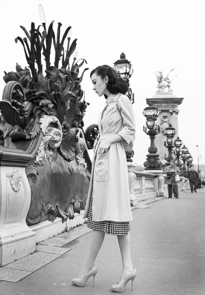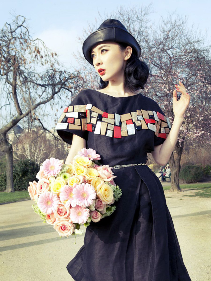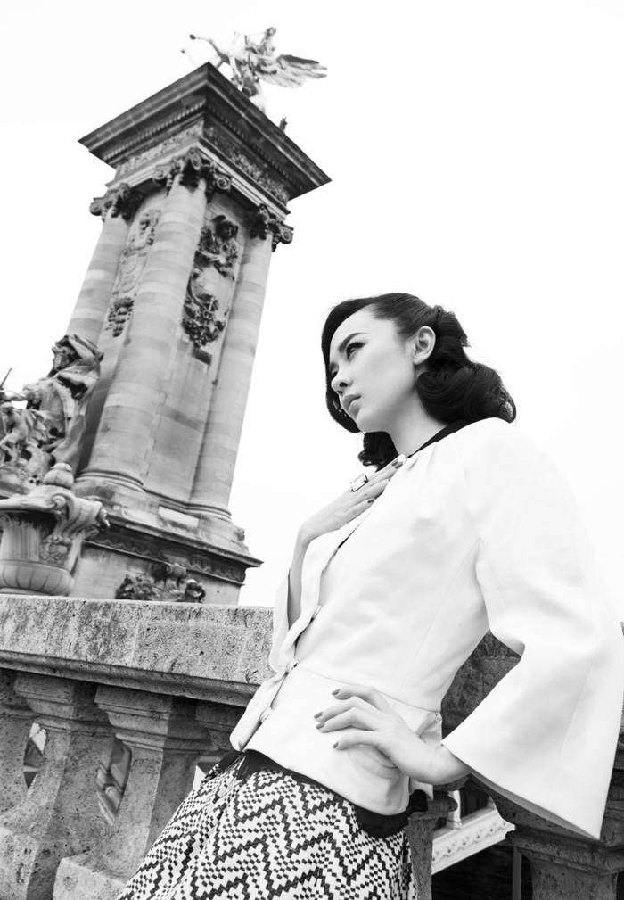 霍思燕巴黎春装大片 红唇盘发优雅女郎巴黎风