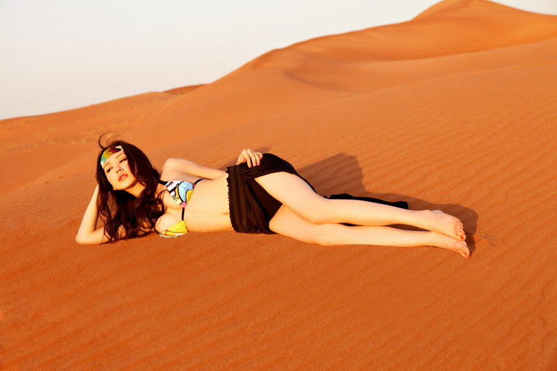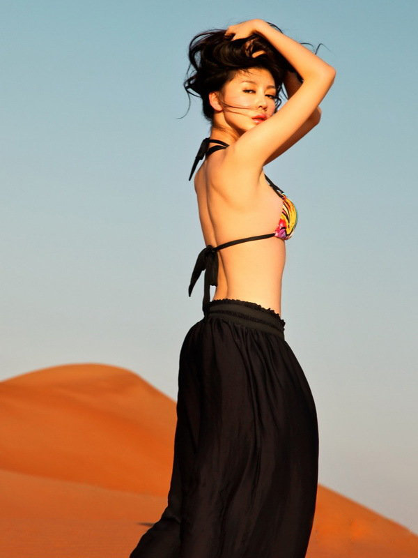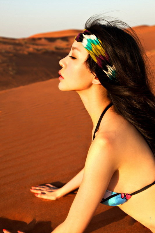 演员巩新亮远赴阿拉伯多国,为某国际一线时装品牌拍摄夏季大片。首批曝光大片为一袭黑色丝绸长裙搭配性感比基尼上装,在沙漠中大秀性感身材。首次大胆尝试与迪拜知名造型师Aiden合作,极富阿拉伯民族风情的头饰与性感比基尼相结合,展现出十足的东方女性魅力。