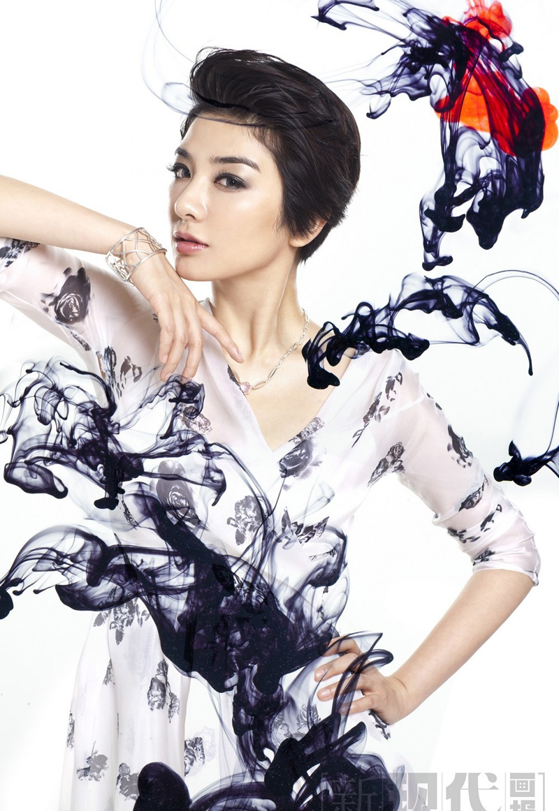 近日,黄奕以水墨画风格造型登上某杂志封面。自从剪去长发之后,黄奕多以干练知性的短发造型示人,而这一次的写真中,黄奕以一袭素然优雅裙装,配上别样的水墨画风渲染,神采灵动,展现了别样的妩媚风情。