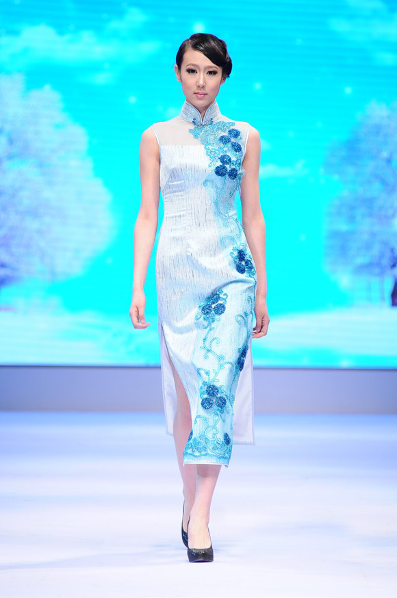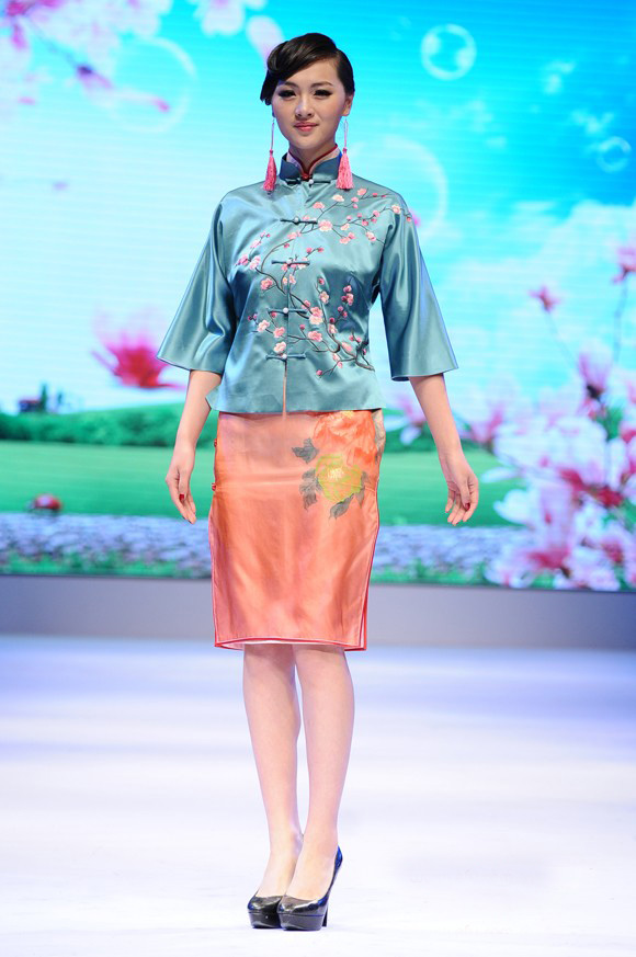 青岛本土服饰品牌“恩玛·秀丹”推出的设计主题《花样·四季》在满族传统服饰的基础上,吸纳了西式裁剪方法,加入了连衣裙、晚礼服等巴黎时尚元素让花样女人更享花样旗袍。