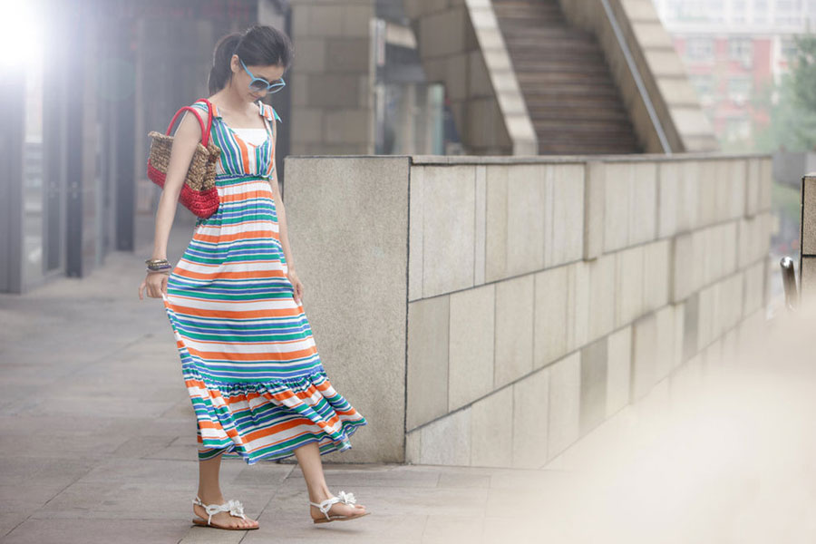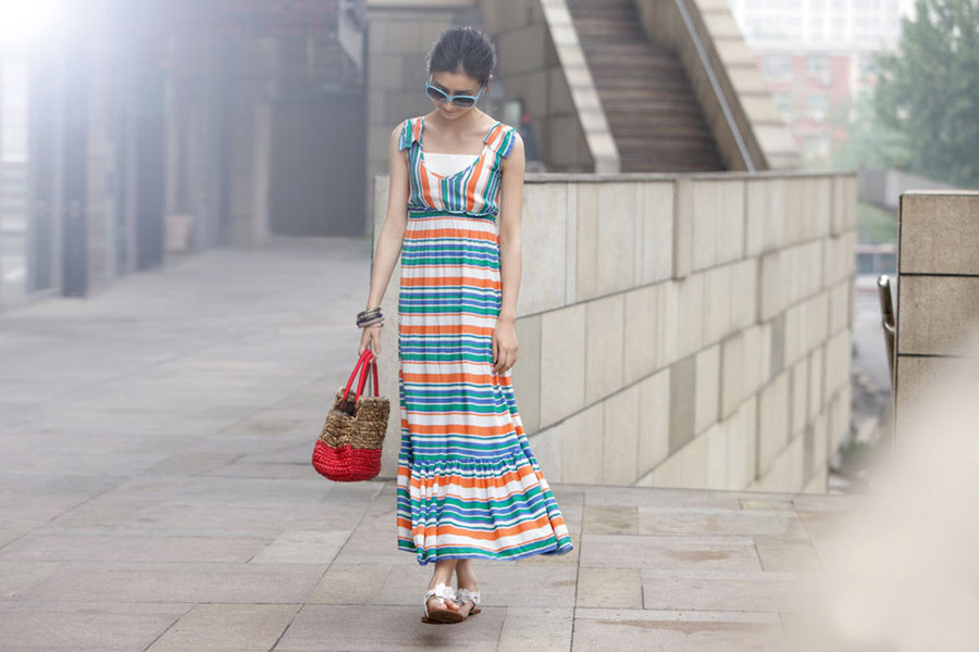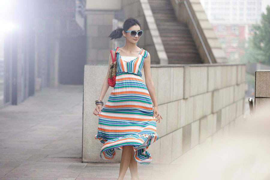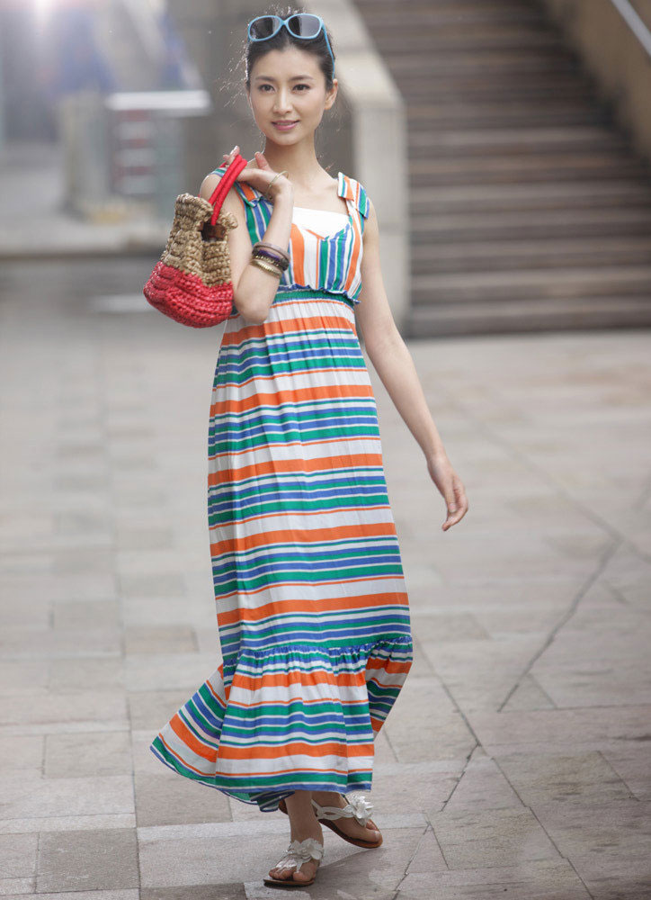 眉姐姐斓曦糖果色长裙给你时尚一面