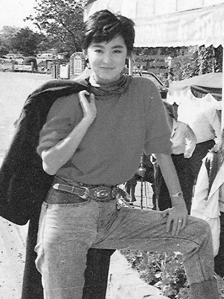 林青霞年轻潮照曝光 连体裤配丝巾潮范儿十足