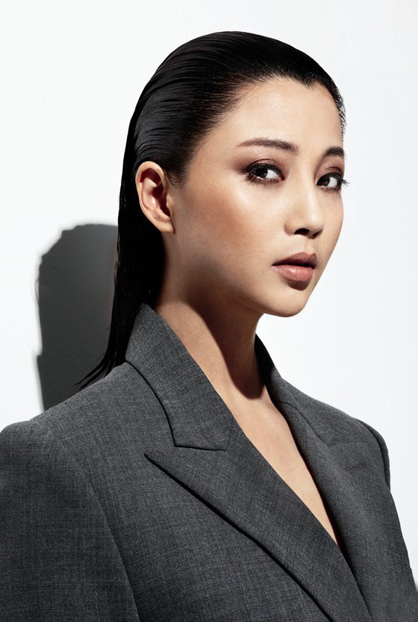 近日,殷桃曝光了一组全新写真。片中殷桃穿着利落灰色西装,尽显OL范儿。