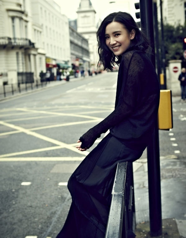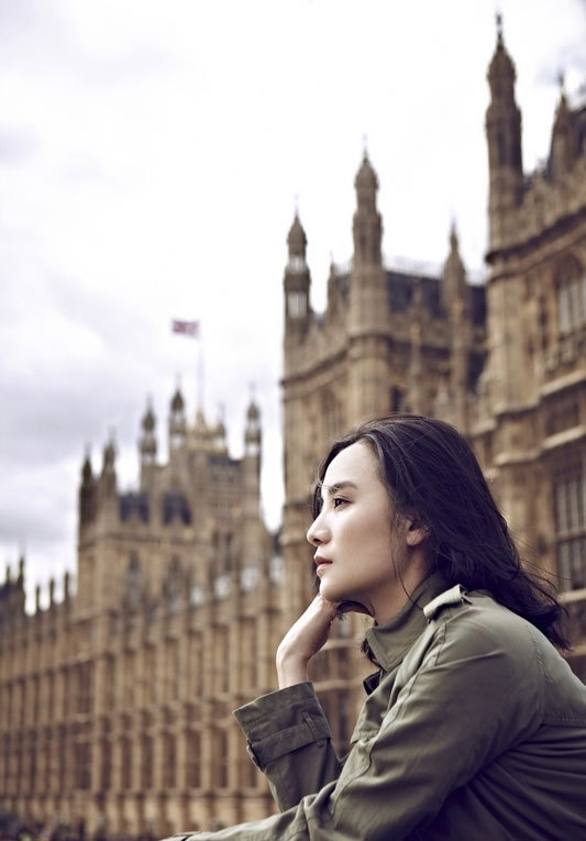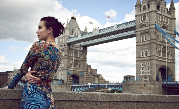 小宋佳伦敦街头化身蓝色妖姬