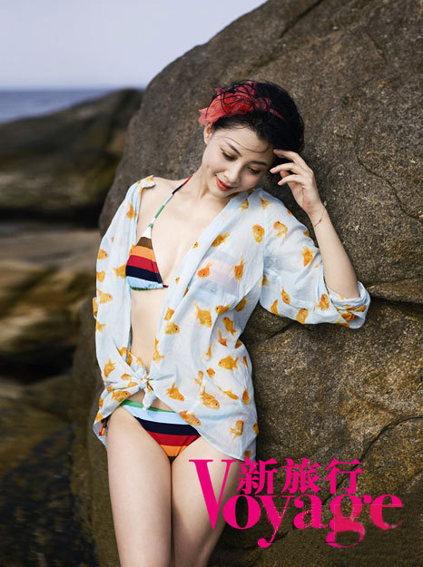 近日,殷桃应《新旅行》杂志邀请拍摄了一组海滩风情大片。在这组大片中,殷桃身穿性感比基尼出镜,与平日的军装造型差异颇大。