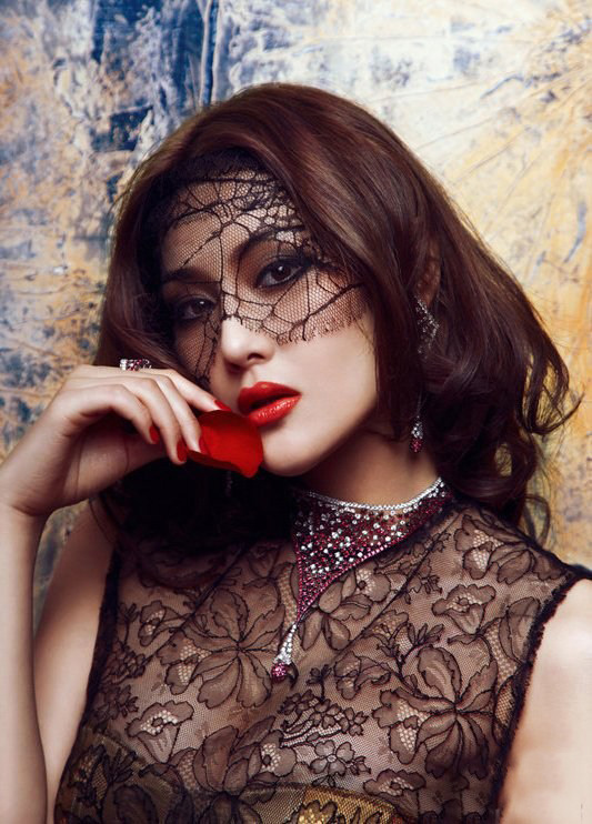 复古盘发冶艳桃唇 张馨予掀都市熟女风潮