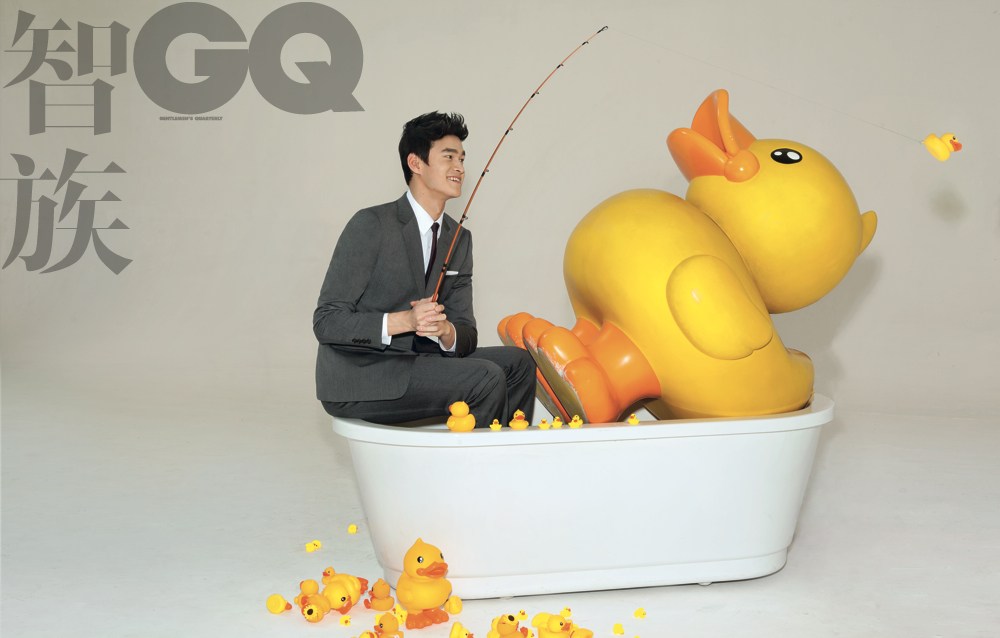 孙杨的一组写真登上10月《智族GQ》,骑着鸭子卖萌咯!
