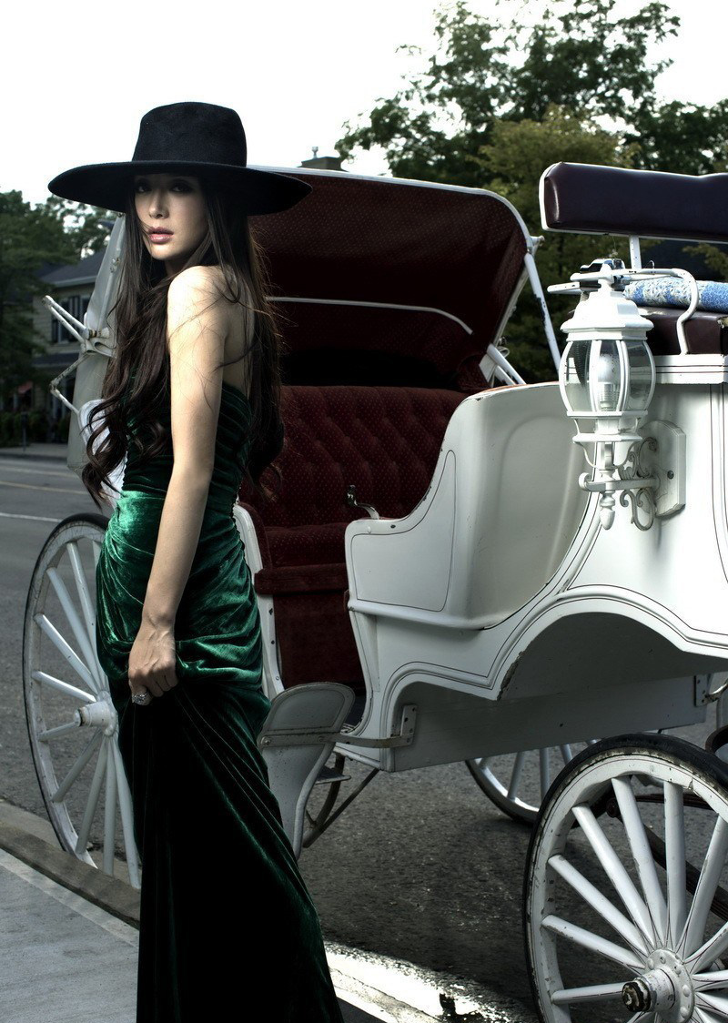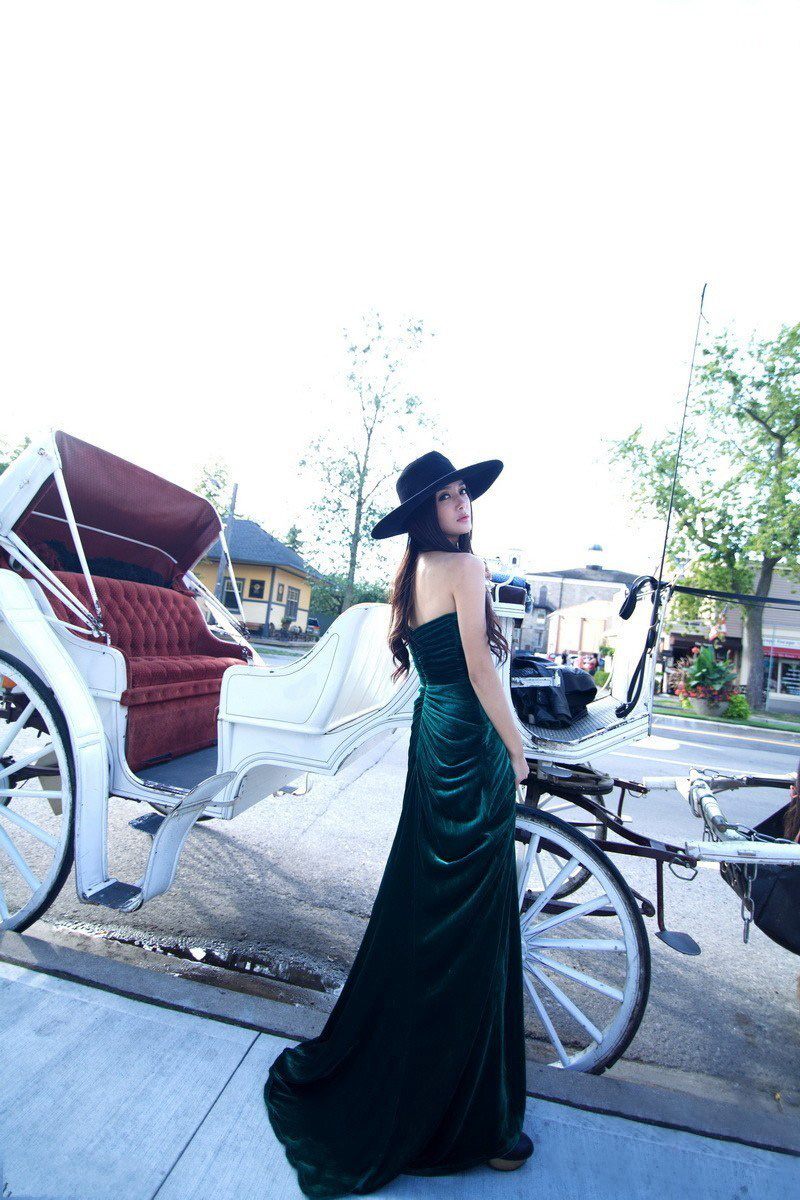 近日,秦岚曝光了一组在多伦多取景拍摄的写真,照片中,秦岚身着墨绿色裹胸长裙,搭配复古礼帽,乘坐梦幻的马车游园,高贵优雅一展法式浪漫景象。