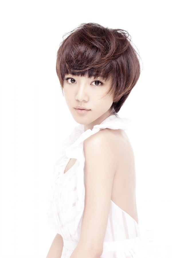 近日,剪了短发的邓家佳曝光了一组写真大片。