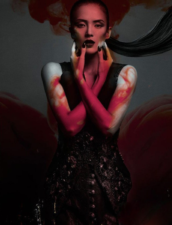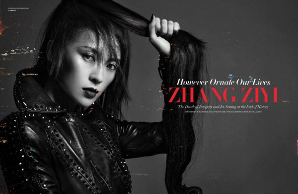 2012年11月,章子怡登美国时尚艺术杂志《flaunt》,拍了一组暗黑系大片,与此前众多写真大片风格迥异。