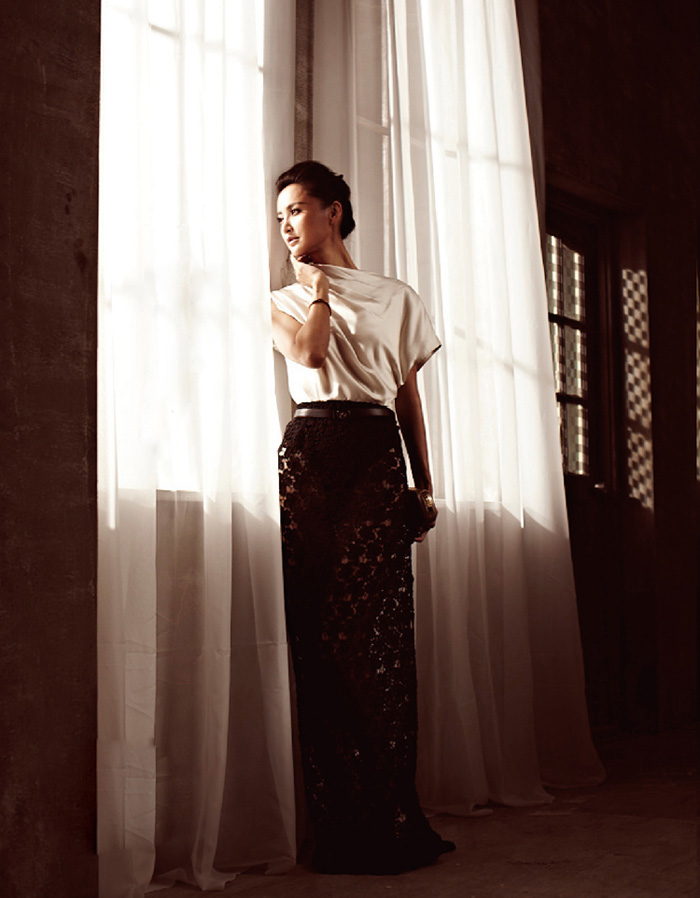 张歆艺登杂志封面 黑纱透视裙高贵典雅