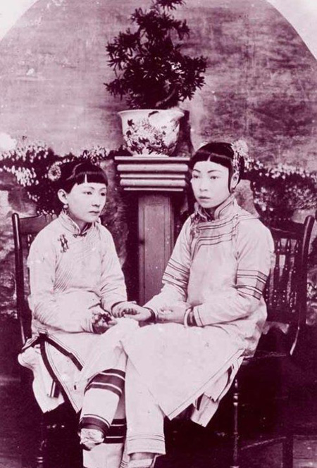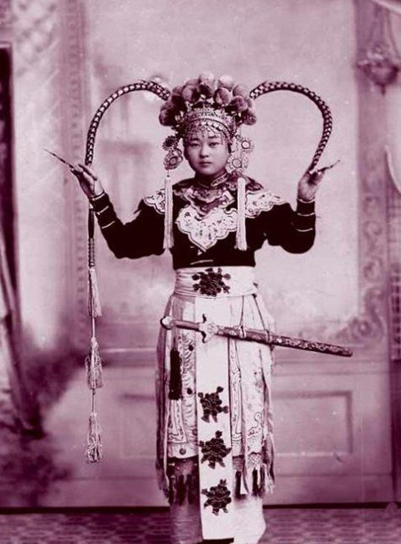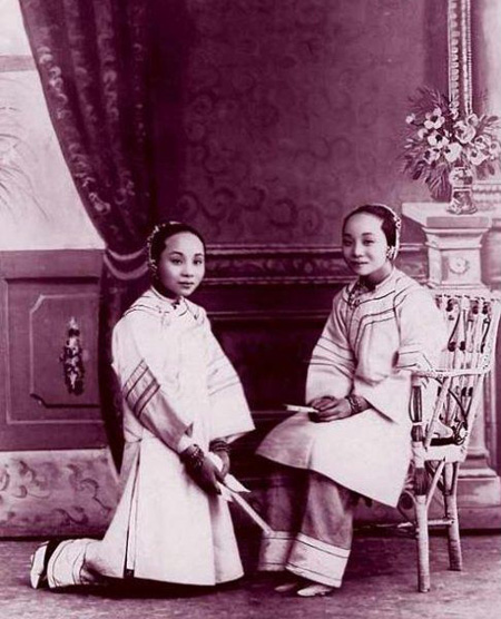 这是一组摄于1912年春天的女性照片,记载了1912年初上海女人的精神风貌,拍摄的地点是上海。图为身穿古装的女孩。那时就有了分身照。