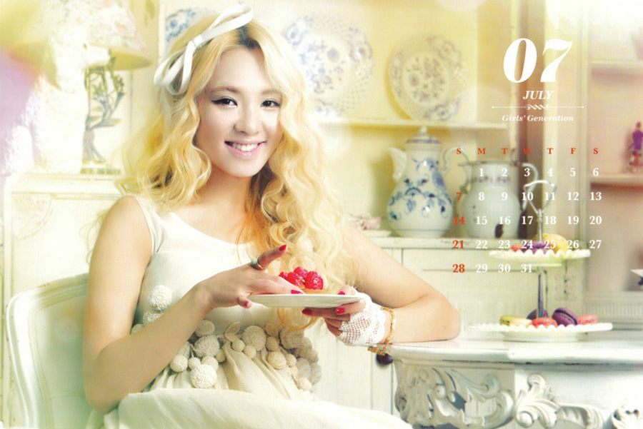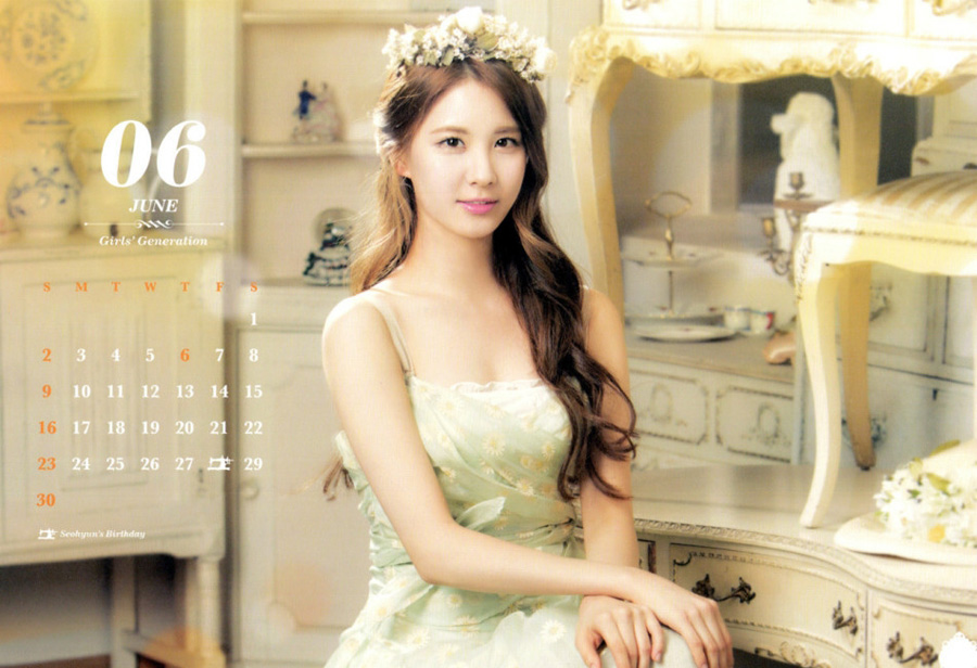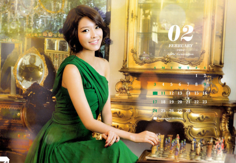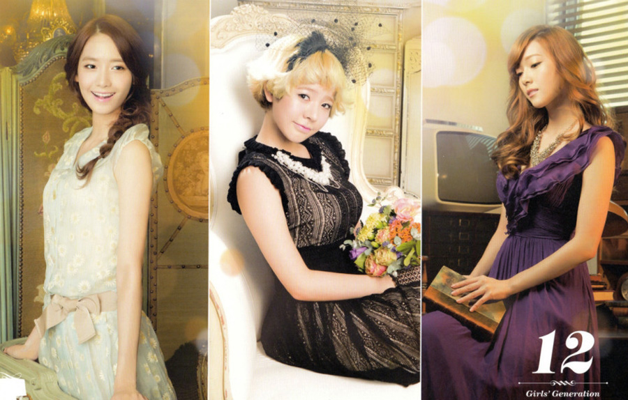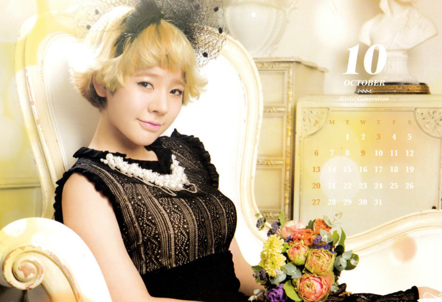 即将携新专辑回归的韩国组合少女时代2013全新年历曝光,九位成员着色彩鲜艳的各色礼服、面带甜美的微笑,展风格不同的九色美貌。