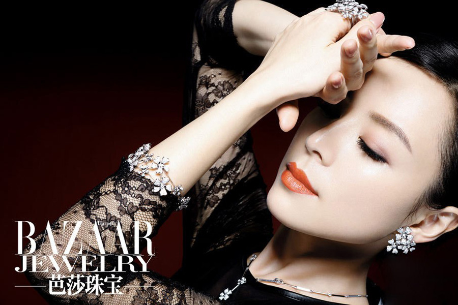 明丽完美的肌肤,清澈的眼神,一如当初的一尘不染,慵懒细腻的气质,不经意间散发出迷人的光彩,华美优雅,深沉大气。透出她独有的华美优雅,同时散发着东方女性的慵懒与细腻。
