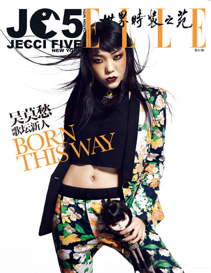 近日,吴莫愁与国际知名媒体ELLE携手JECCI FIVE杰西伍女装品牌拍摄《ELLE-JECCI FIVE》别册2013年春季刊封面,担任该本别册2013年开年刊封面。