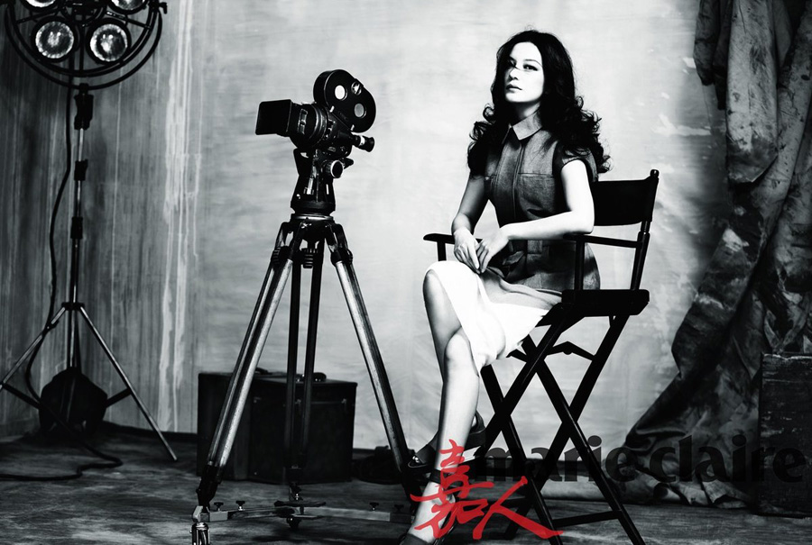这次封面造型上选择了DIOR的连衣裙,大裙摆华丽铺开,很大气;发型随性,衬温婉气质;浅蓝色耳坠画龙点睛,与裙子蓝色印花呼应。有人说,做演员是把别人的情绪套到自己身上,做导演则是把内心暴露给别人看。我一直不觉得自己是文艺女青年,那些阅读,观看,不是爱好文艺,不
