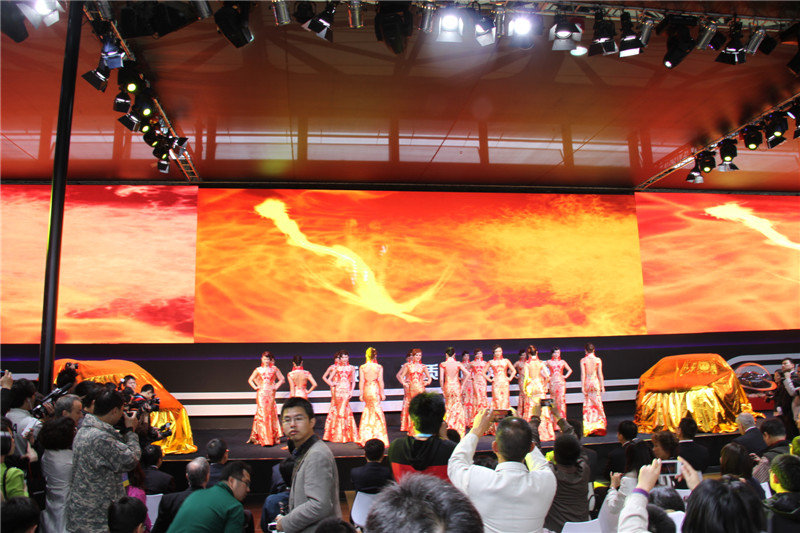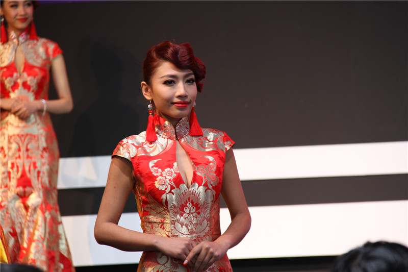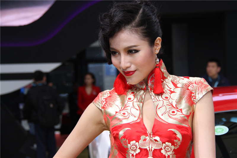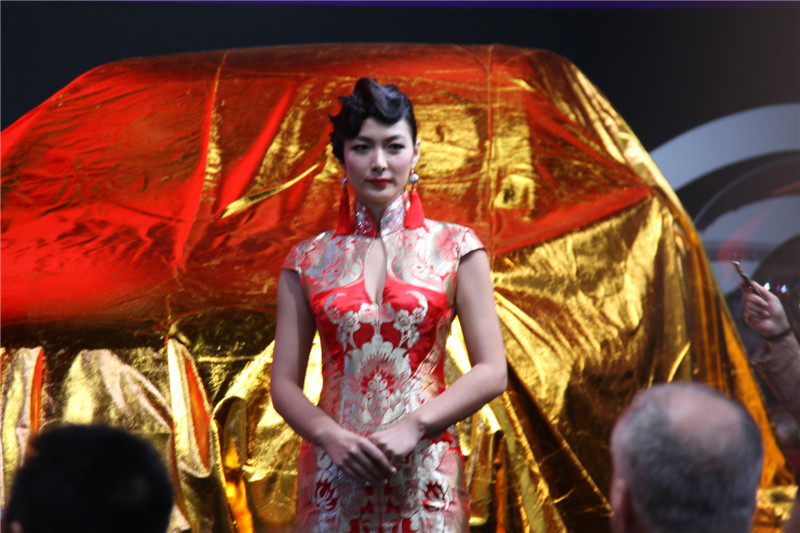 上海车展旗袍车模助阵让人眼前一亮。红色和金色的喜庆搭配,让全城刮起一阵中国风。