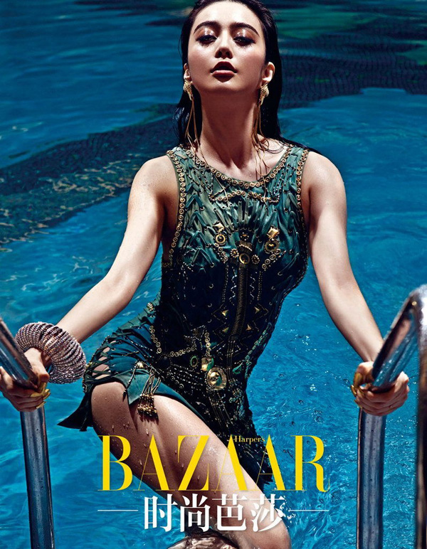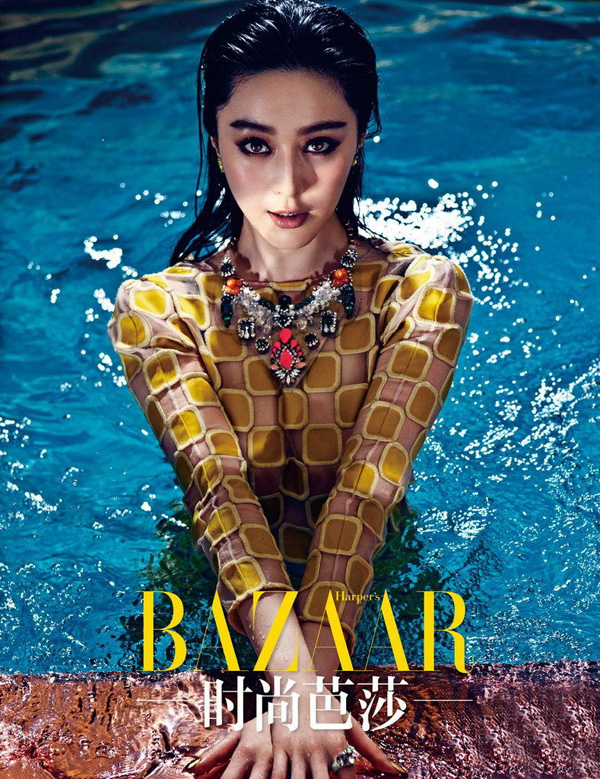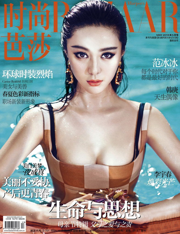 范冰冰近日登上五月刊某杂志封面,湿身演绎女子的柔和魅力。