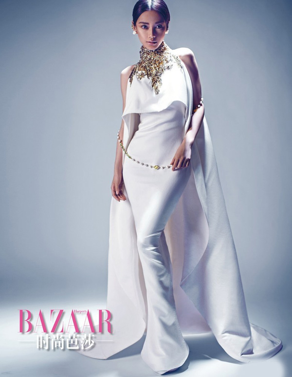 近日,Angelababy为杂志《时尚芭莎》拍摄了一组封面写真。在这组写真中,她突破尺度,大秀事业线。