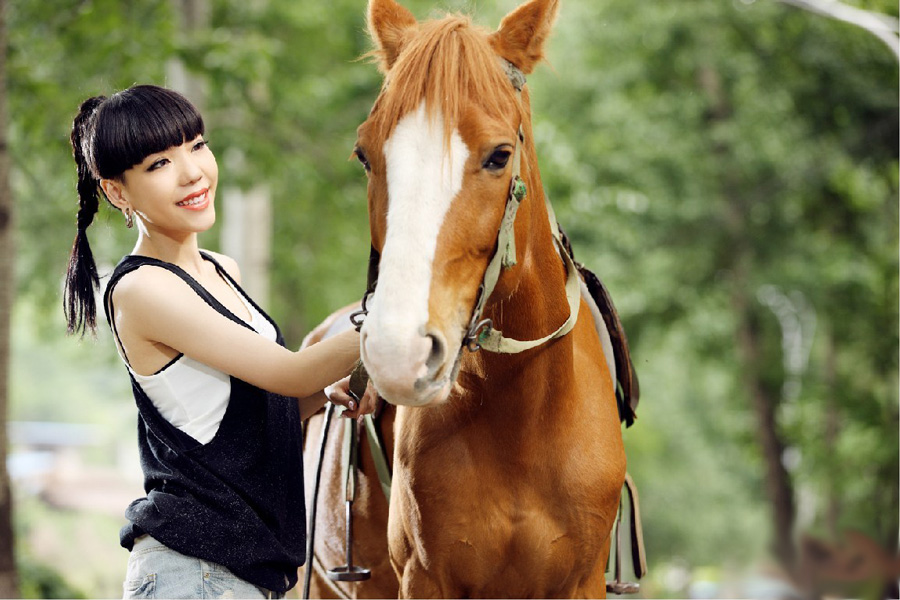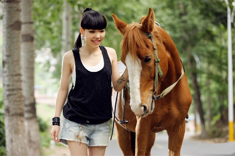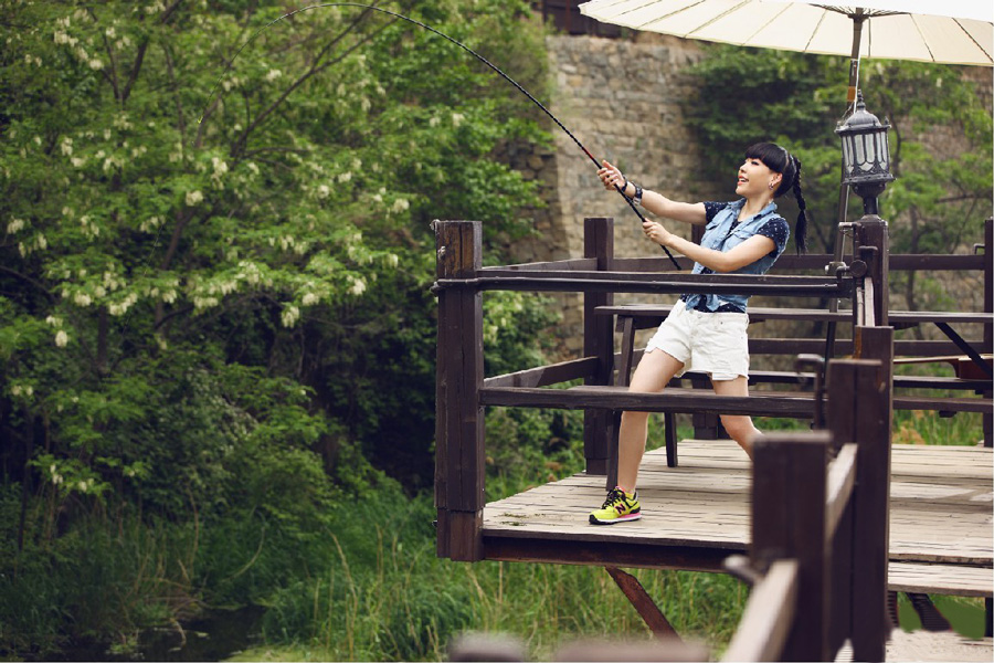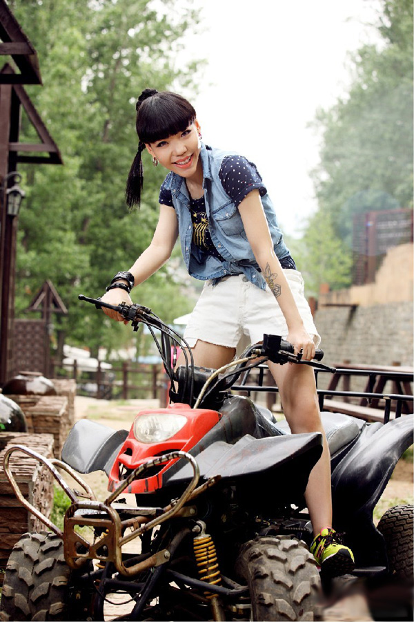 吴莫愁为时尚杂志《优享生活》拍摄的一组夏日清新户外大片曝光。在这组大片中,吴莫愁一改以往齐刘海高马尾红唇烟熏妆的个性热辣女生形象,或以短裤牛仔背心在大卡丁车上展现青春活力,或一身黑白条连衣裙在木桥上手抱吉他,清新宜人,或干脆一袭碎花裙在路边笑靥如花。