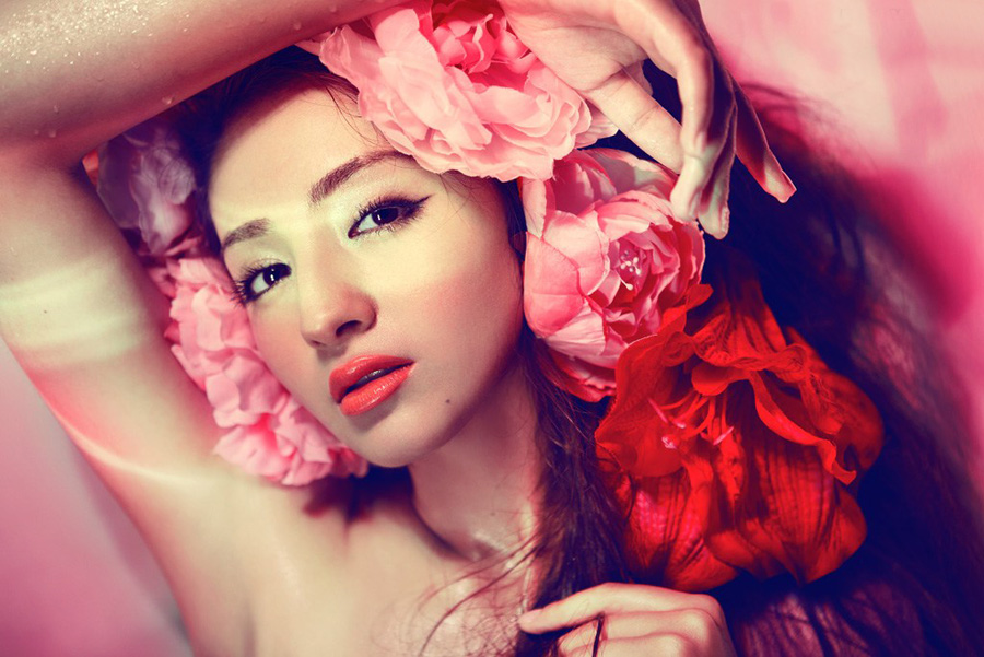 麦迪娜花朵唯美写真 眼神明媚澄澈动人