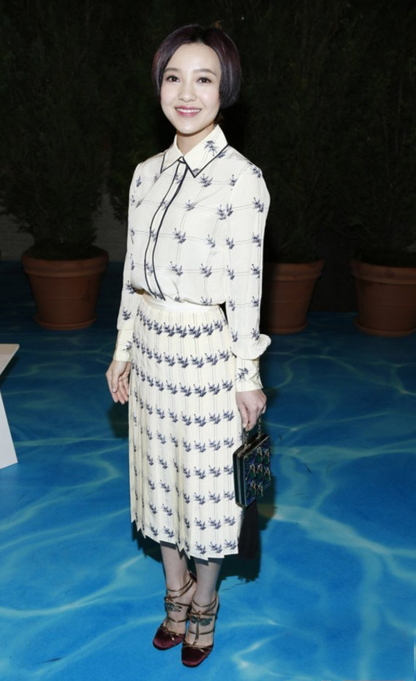 唐嫣格子衫那个还不错,白裙那个光线原因吧,也可能是发迹线太高,最好留个刘海……