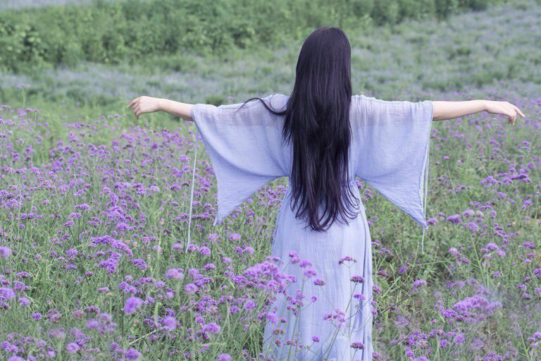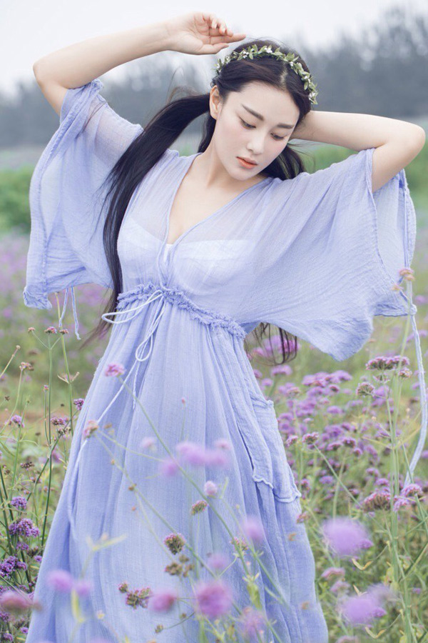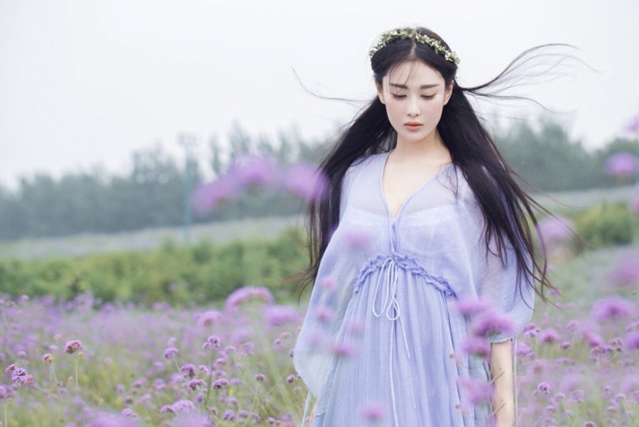 张馨予于17日晚在微博晒出一组花海写真,穿着紫色长裙的她徜徉在花海中,画面浪漫唯美。