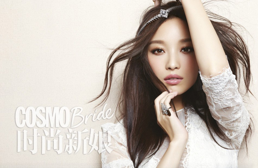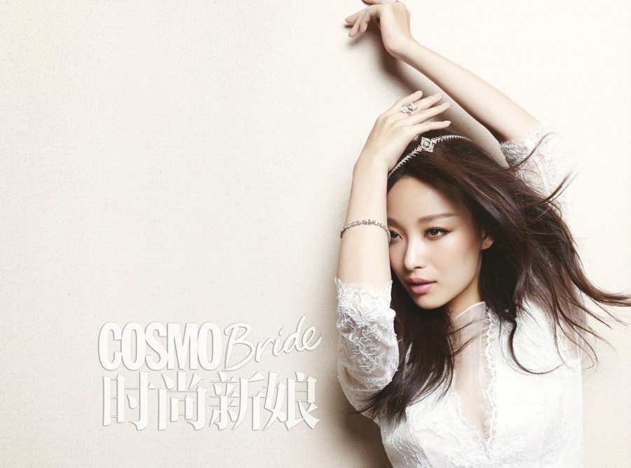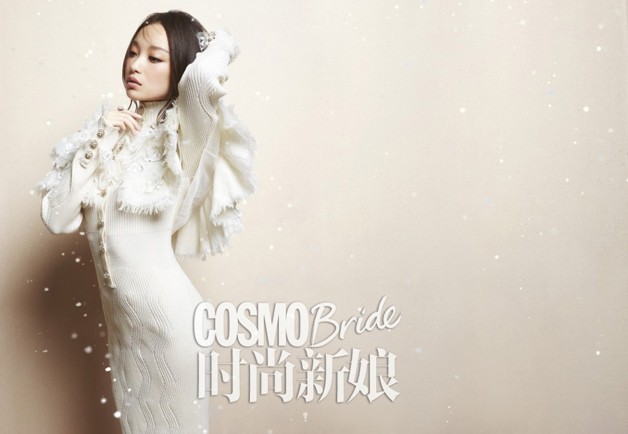 倪妮登杂志封面 质感婚纱凸显傲人身材