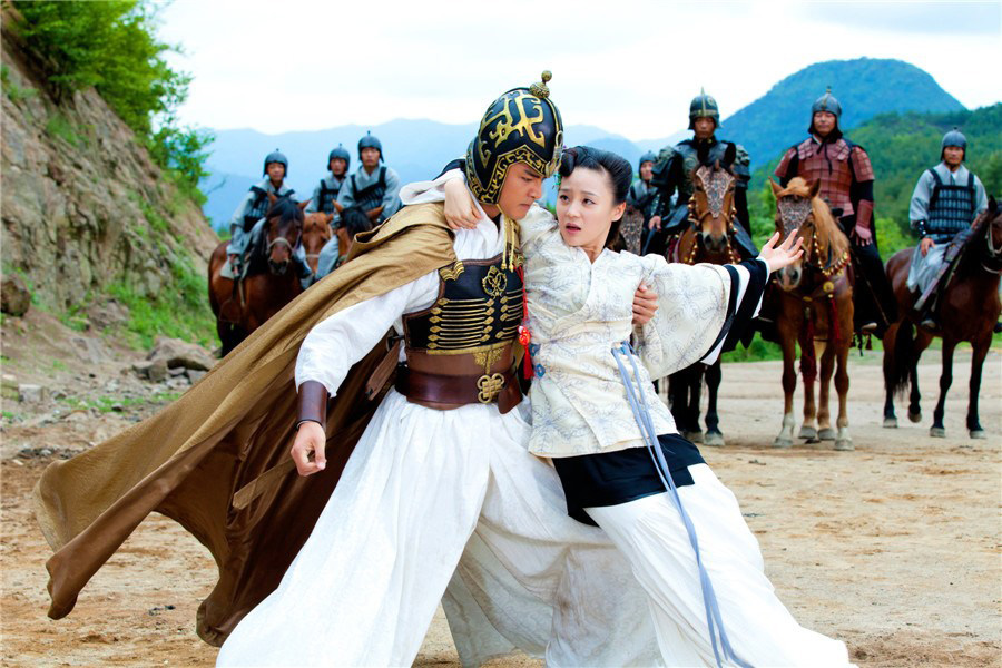 《王的女人》以楚汉相争为故事背景,讲述了两个男人的一世恩怨,两个女人的美人心计。明道与陈乔恩这对荧幕最佳情侣,八年后再次回归却未能圆满。吕乐(陈乔恩饰)下嫁海天后,云狂(明道饰)与妙戈(袁姗姗饰)大婚,大婚的明道身穿华服,新娘袁姗姗盖头下掩饰不住的笑脸。