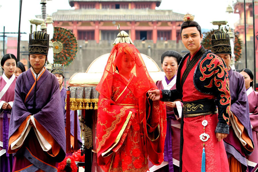 81《王的女人》以楚汉相争为故事背景,讲述了两个男人的一世恩怨,两个女人的美人心计。明道与陈乔恩这对荧幕最佳情侣,八年后再次回归却未能圆满。吕乐(陈乔恩饰)下嫁海天后,云狂(明道饰)与妙戈(袁姗姗饰)大婚,大婚的明道身穿华服,新娘袁姗姗盖头下掩饰不住的笑脸。