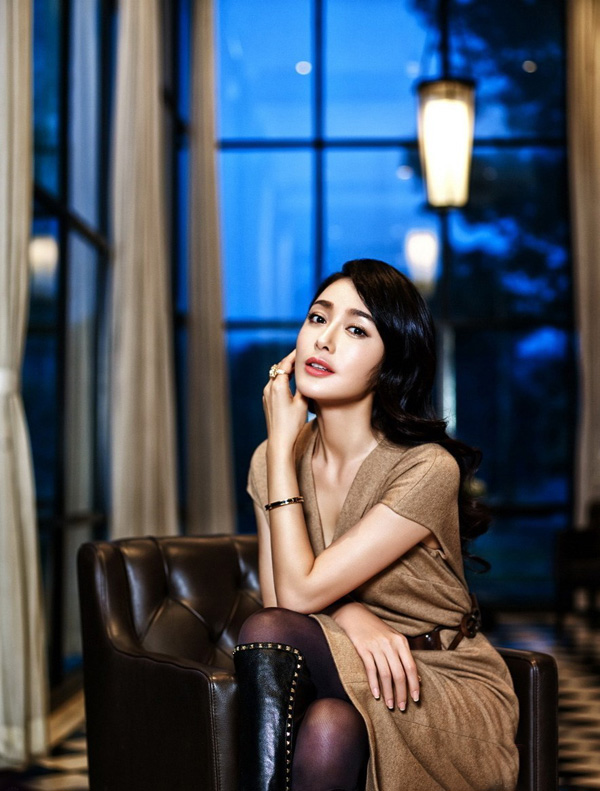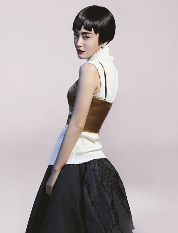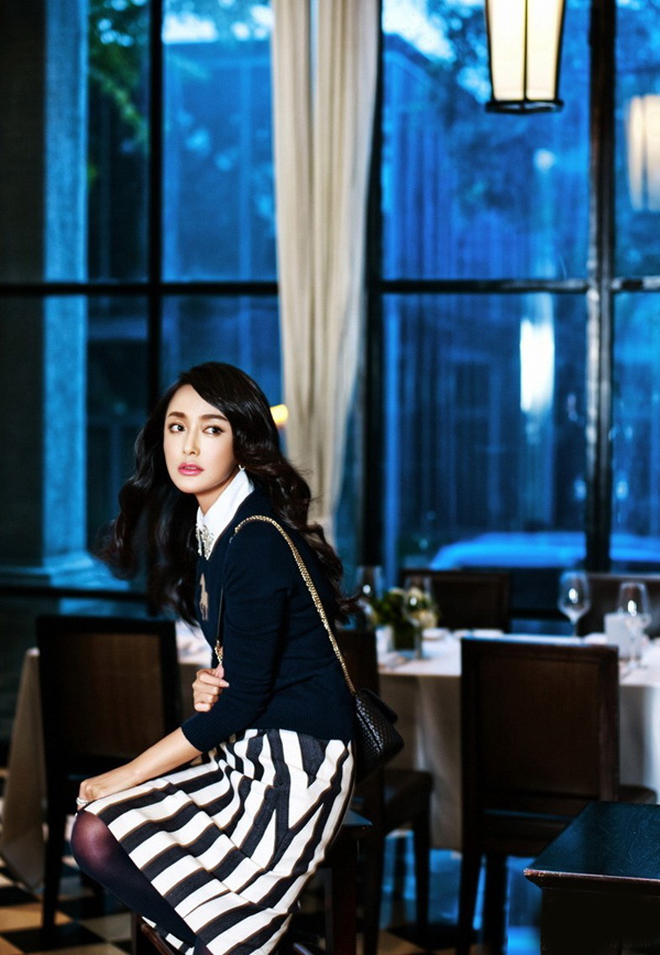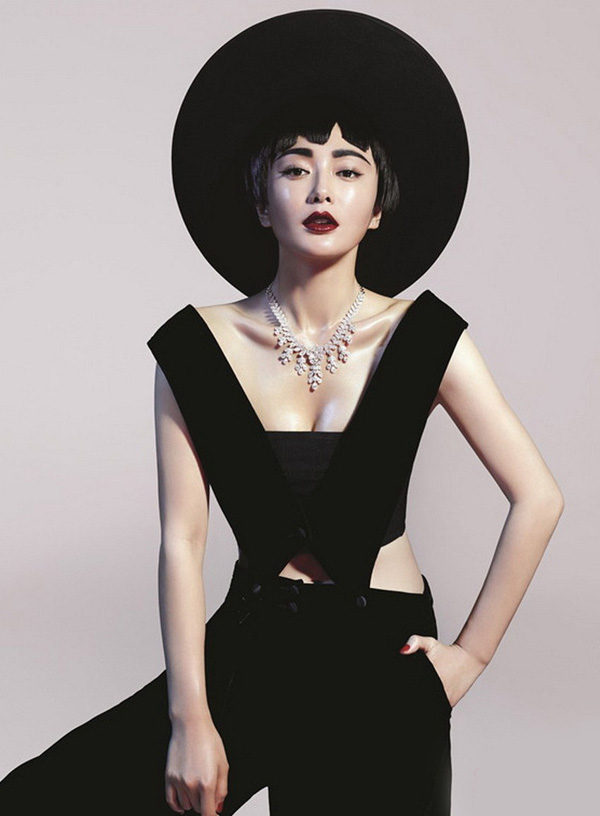 秦岚复古粗眉红唇 英气剑眉变身御姐