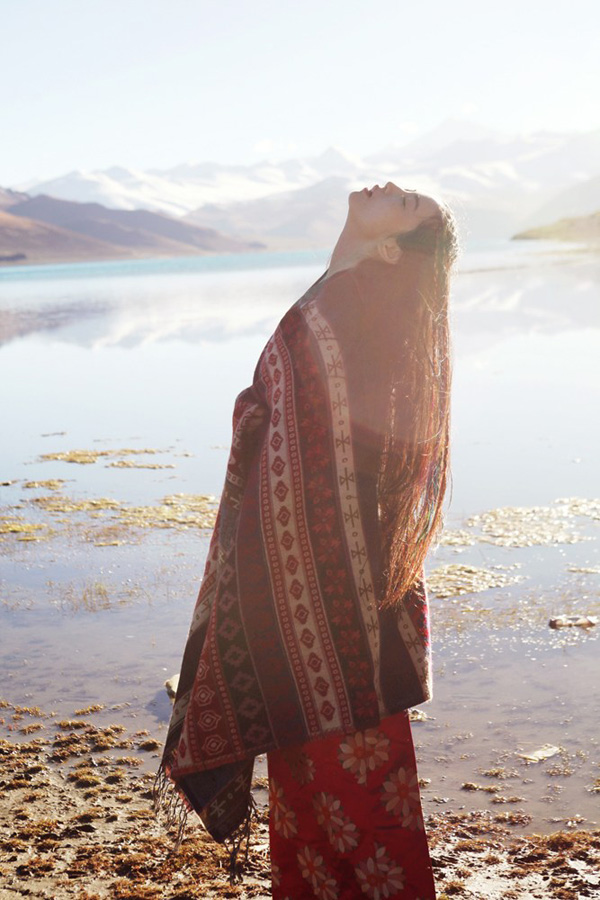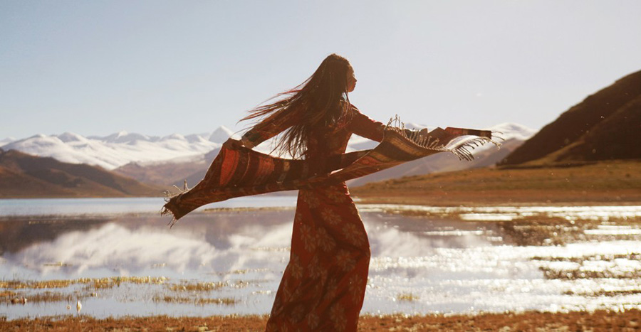 近日,一组有关“国风美人”张辛苑的西藏写真在网上曝光。片中张辛苑未施粉黛,身着藏族少女长裙,头上梳起极具民族色彩的长辫,在海拔4000多米的青藏高原上翩翩起舞,编织自己心中的彩色梦幻。