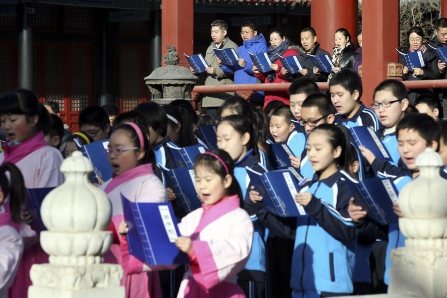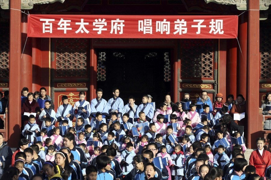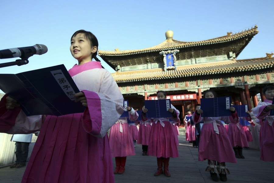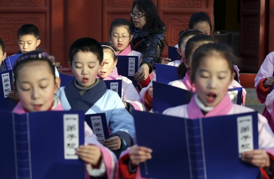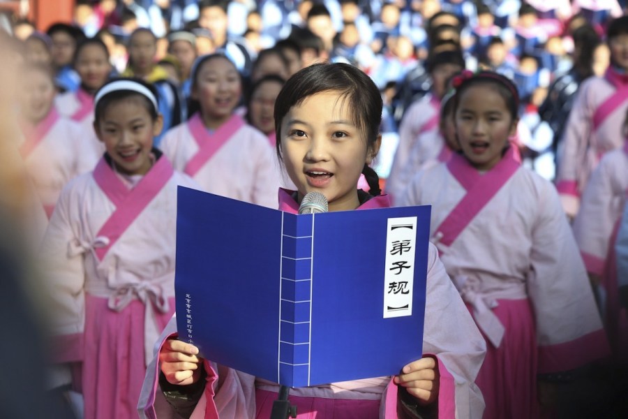 林妙可着汉服携北京小学生唱弟子规