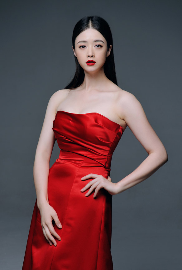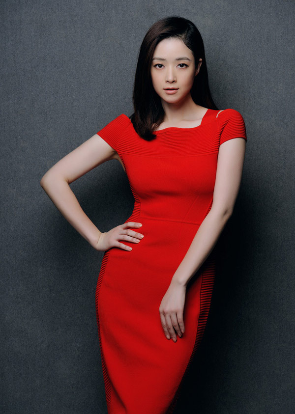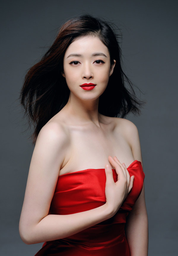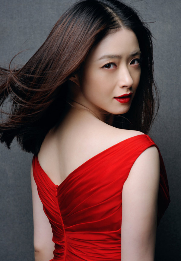 蒋欣开年红唇红裙 大秀香肩好美艳