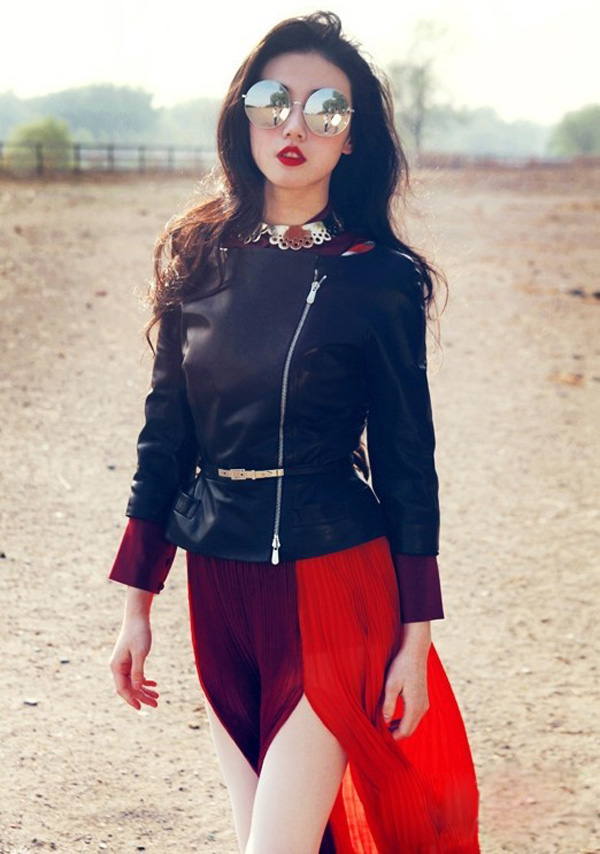 时尚界的宠儿张辛苑,近日以烈焰红裙的复古形象拍摄了一组时尚大片。片中的她身着硬朗的黑色皮衣,与下身柔软的裙摆形成鲜明对比,时尚大女人面貌令人惊艳。