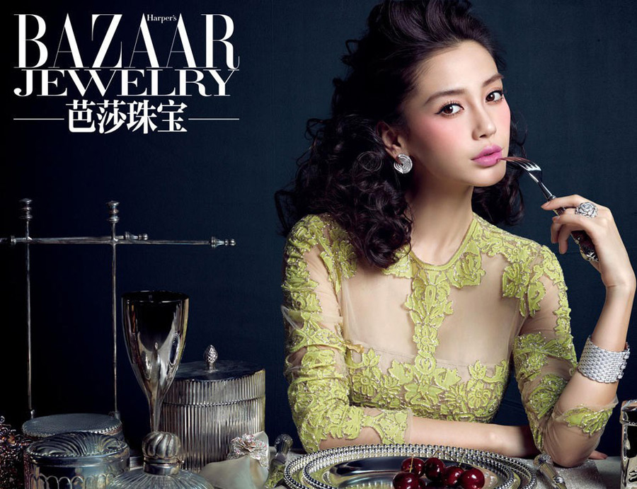 近日,新四小花旦之一的Angelababy为《芭莎珠宝》拍摄封面大片,桃色妆容性感甜蜜,复古蕾丝礼服演绎珠宝奢华气质。